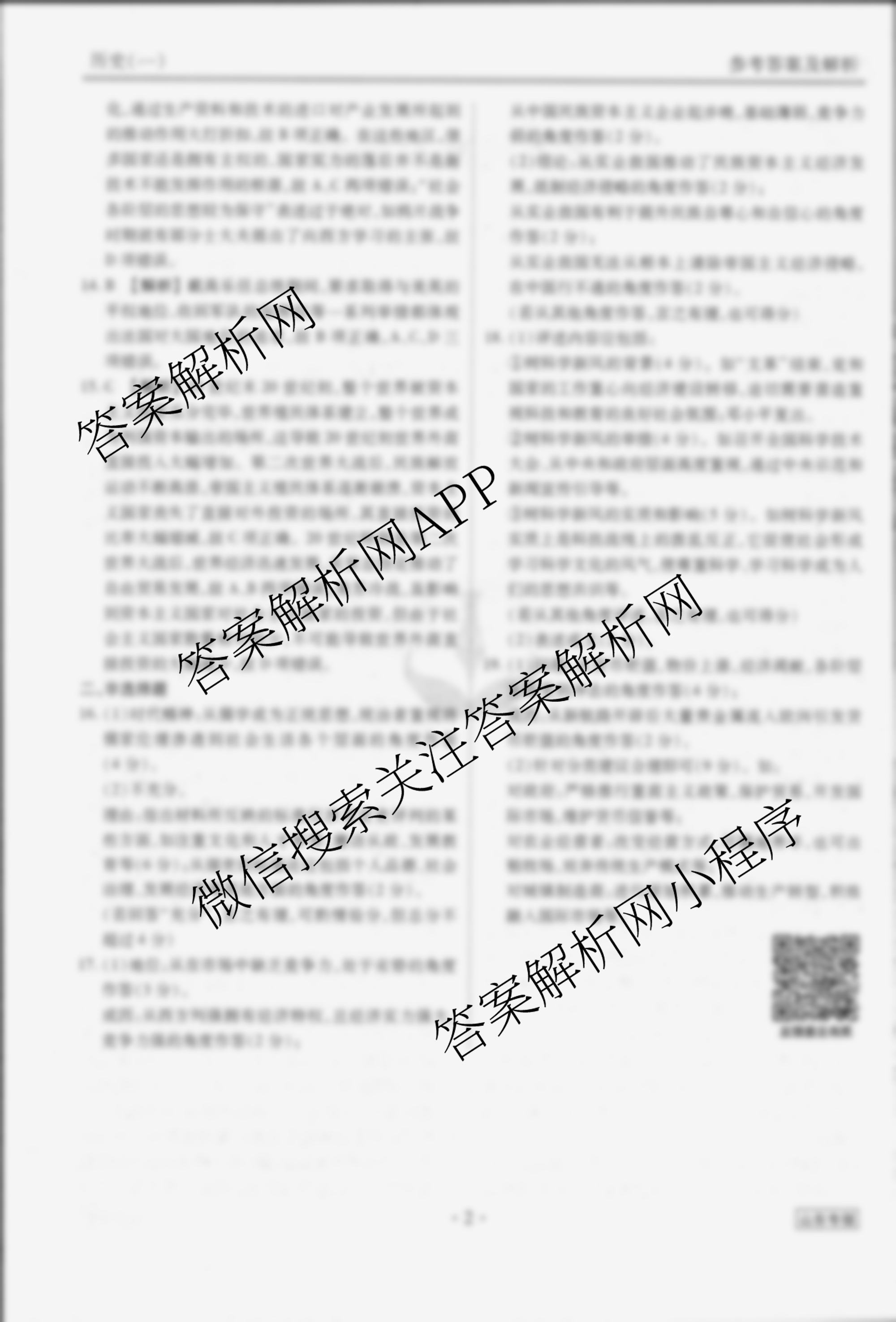 - (衡水金卷先享题)信息卷 2024年普通高中学业水平等级考试模拟试题 历史(山东专版)(一)1答案