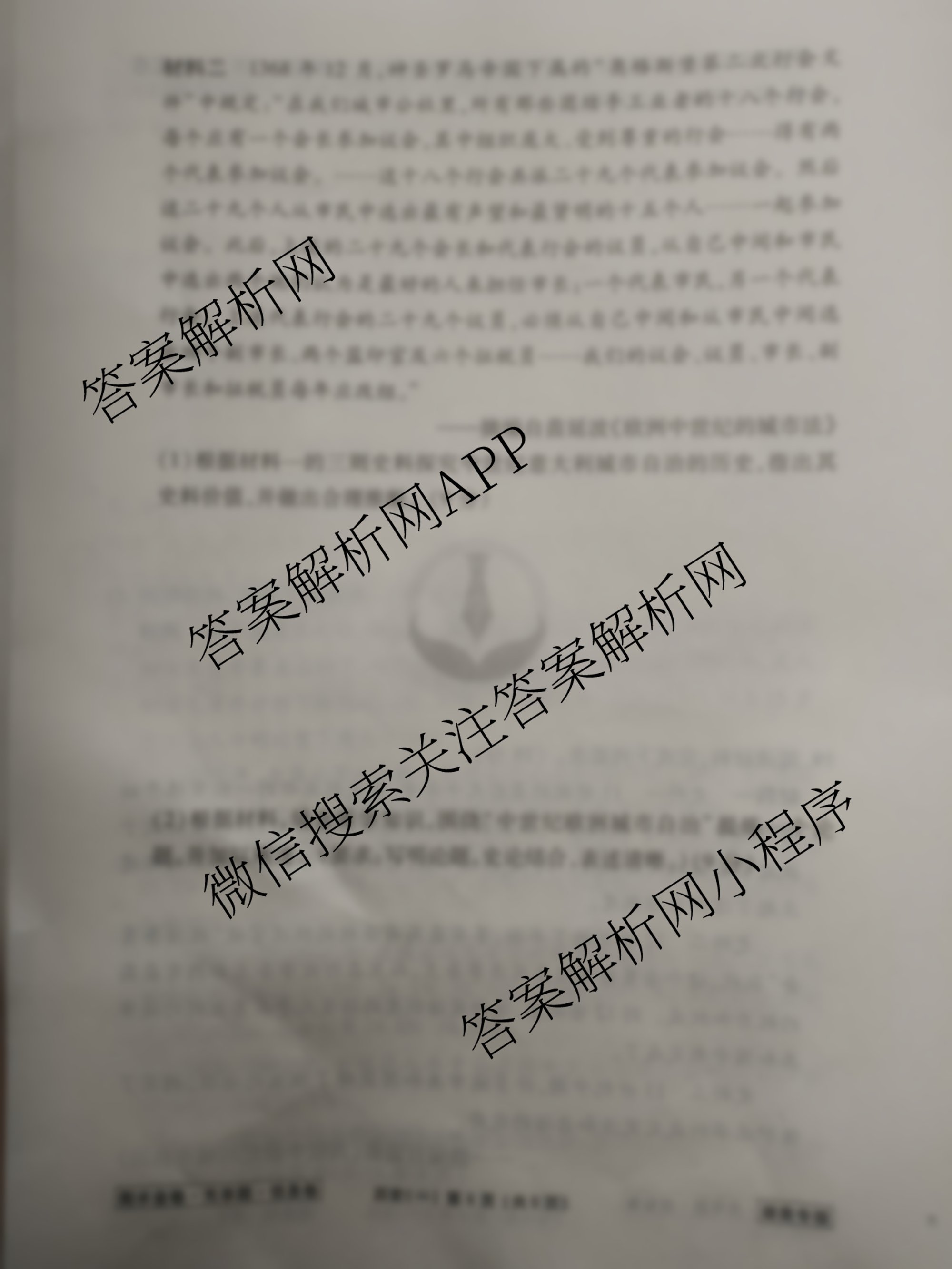 - (高三)衡水金卷先享题信息卷2024年普通高中学业水平选择性考试模拟试题 历史(HJL)(一)1答案