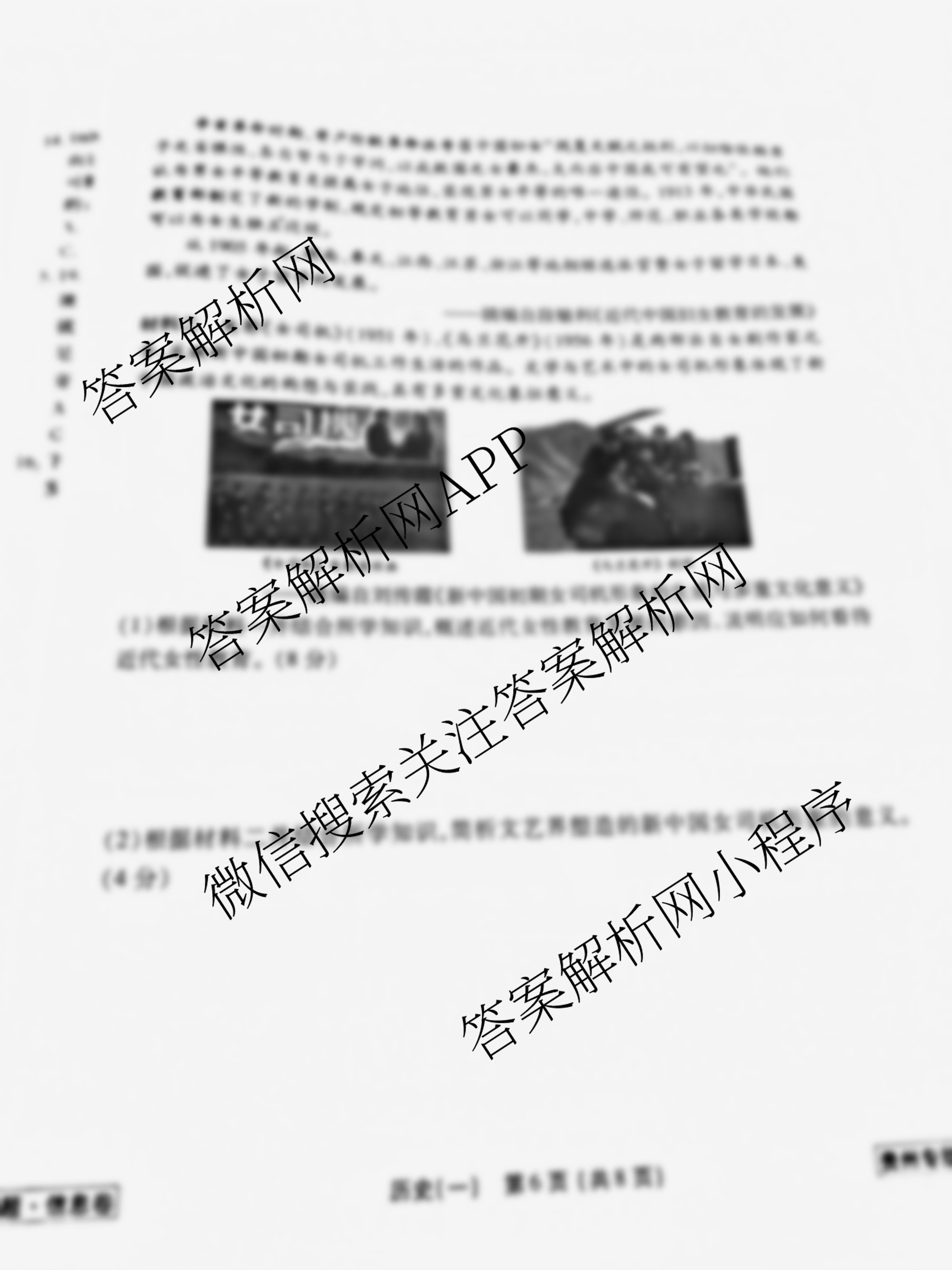 - (高三)衡水金卷先享题信息卷2024年普通高中学业水平选择性考试模拟试题 历史(HJL)(一)1答案