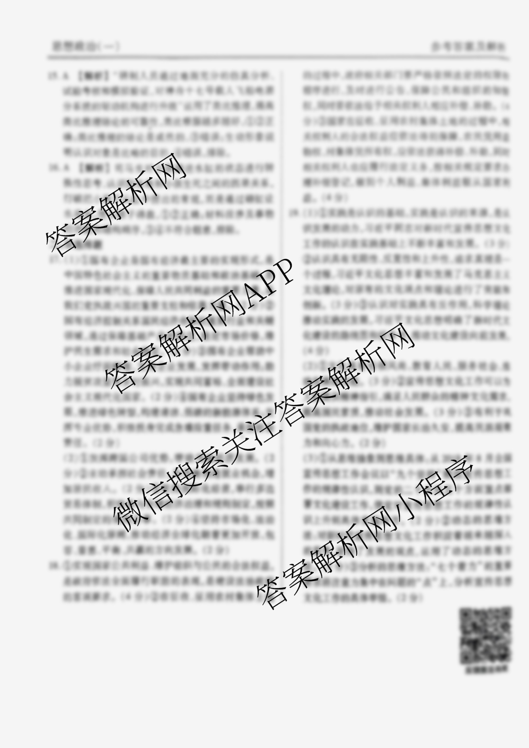 (衡水金卷先享题)信息卷 2024年普通高中学业水平选择性考试模拟试题 政治(吉林专版)(一)1答案