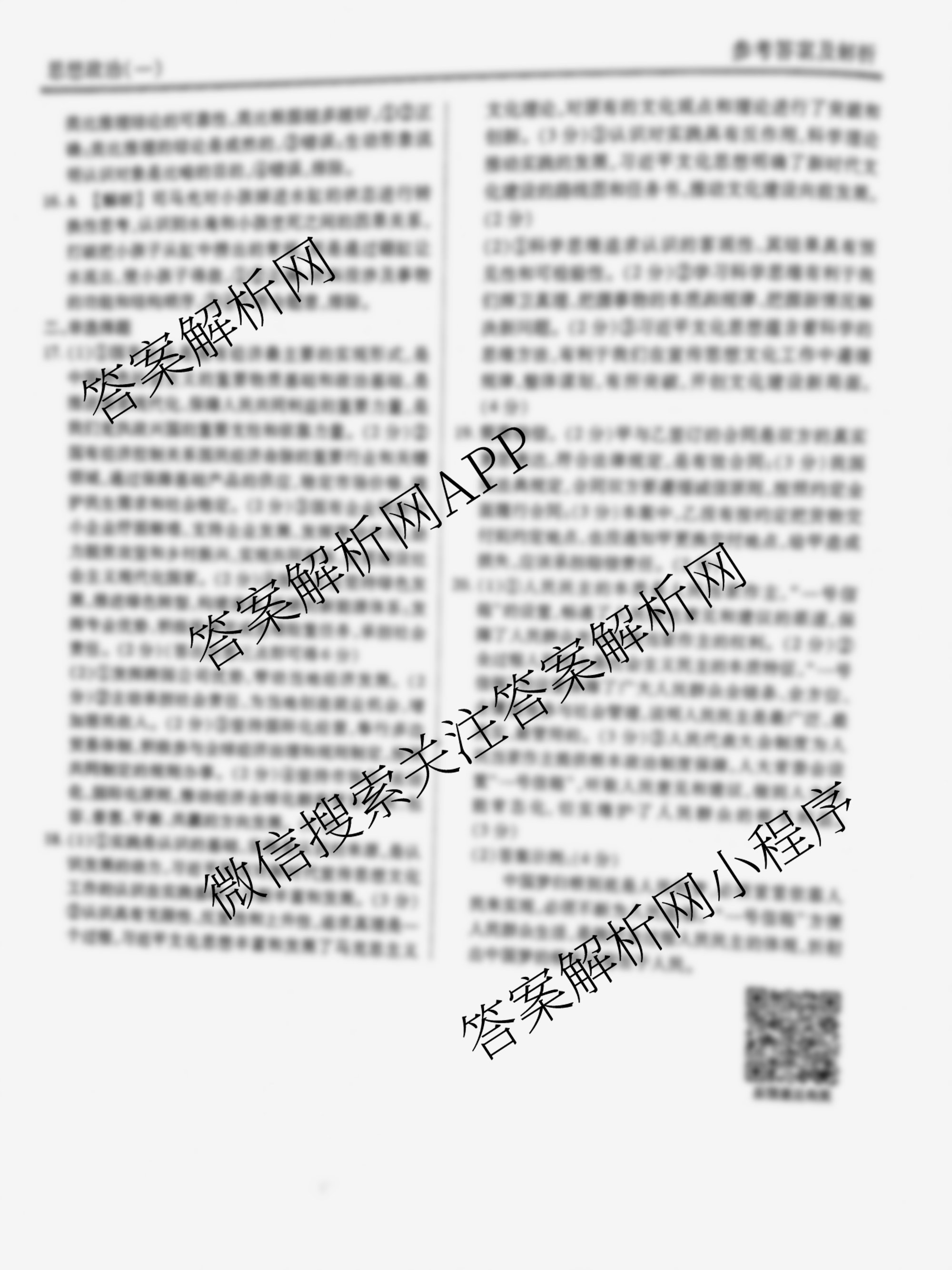 (衡水金卷先享题)信息卷 2024年普通高中学业水平选择性考试模拟试题 政治(福建专版)(一)1答案