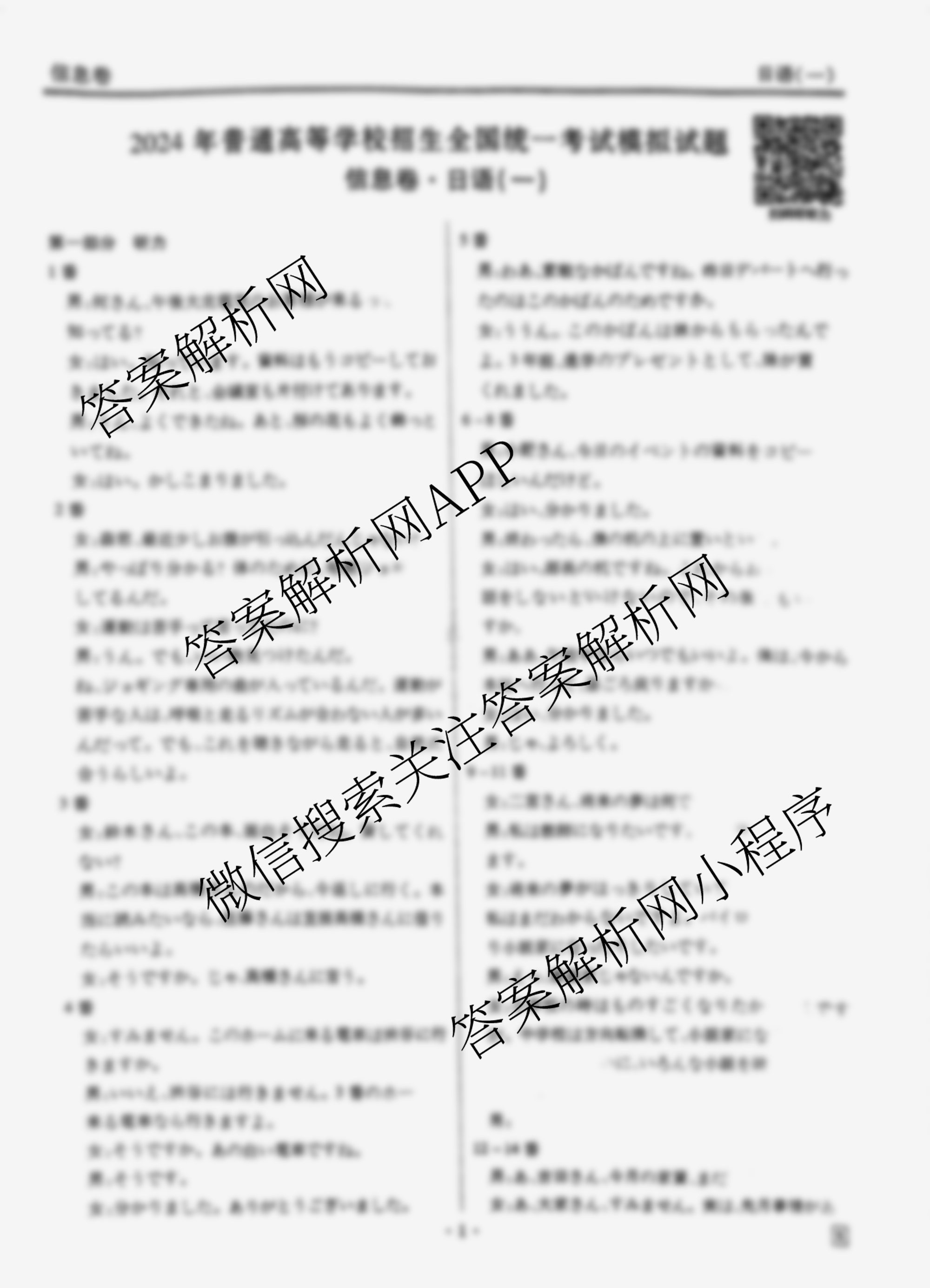 [衡水金卷先享题]·信息卷 2024年普通高等学校招生全国统一考试模拟试题(一)1日语(X)答案