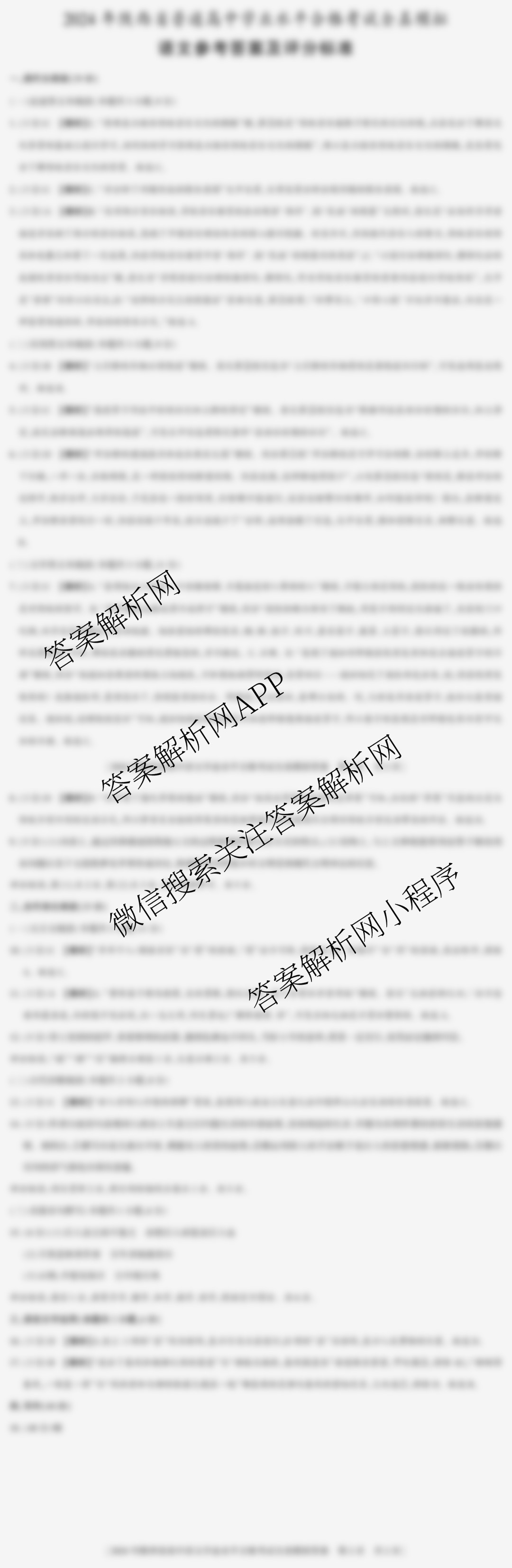 - [高一][益卷]·2024年陕西省普通高中学业水平合格考试全真模拟语文(B)答案