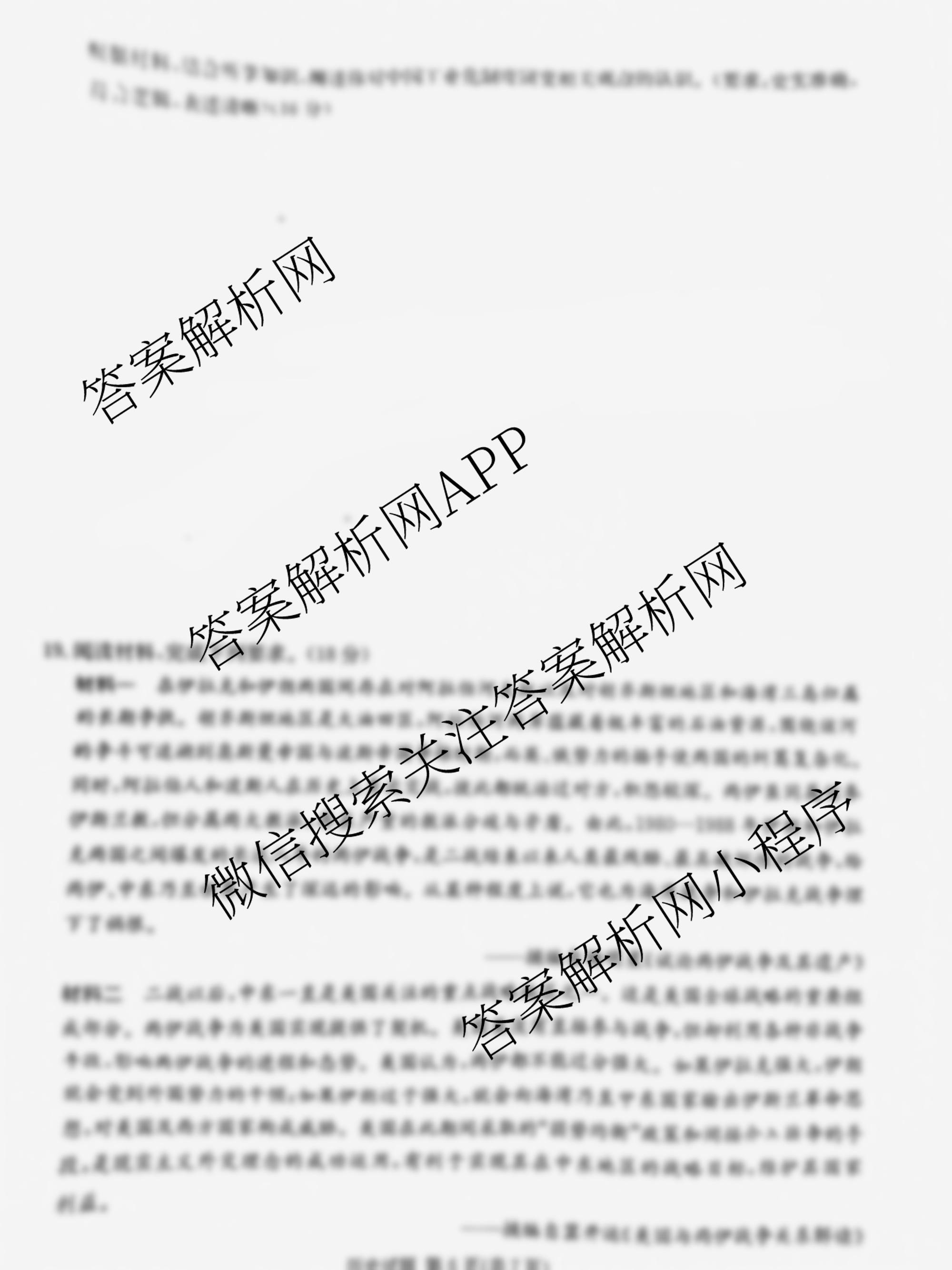 - [炎德英才大联考]2024年高考考前仿真联考二历史答案