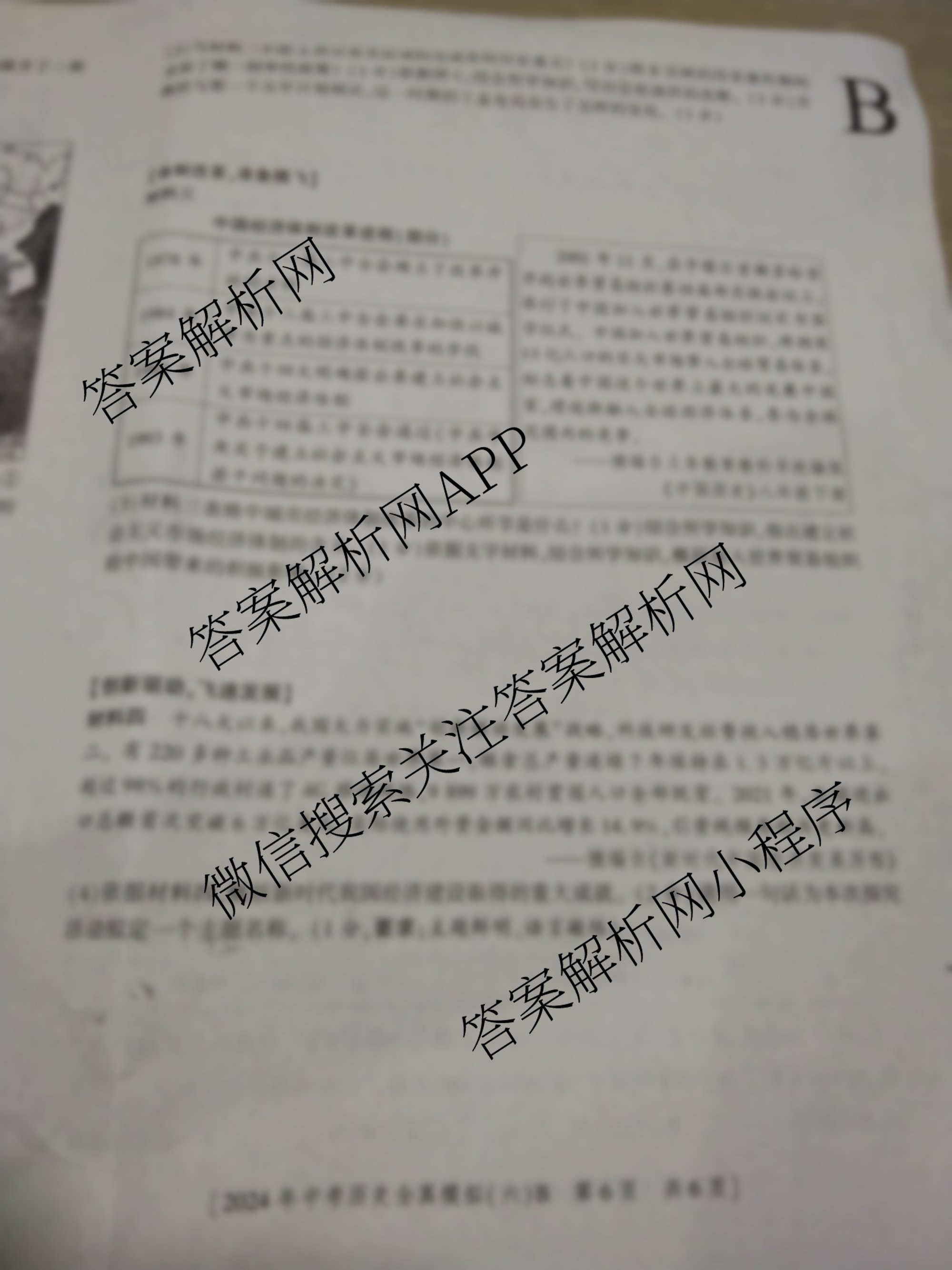 - 陕西(益卷)2024年陕西省初中学业水平考试全真模拟(六)6历史(B)答案