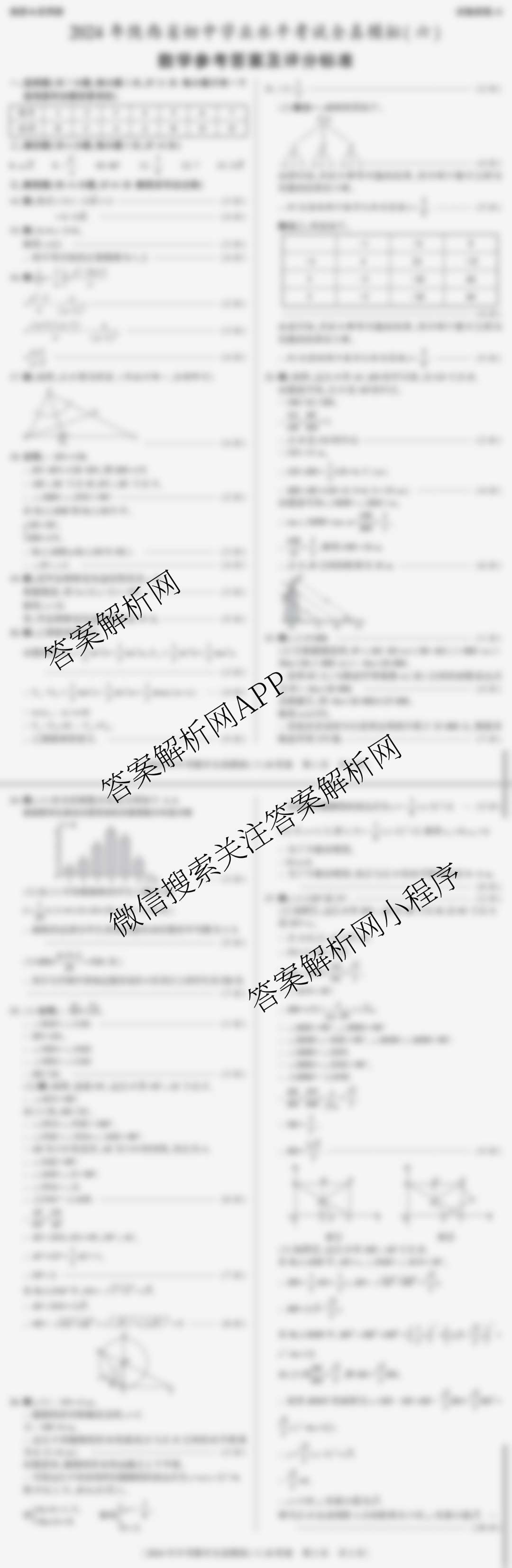 - 九年级陕西[益卷]2024年陕西省初中学业水平考试全真模拟(六)6数学(A)答案