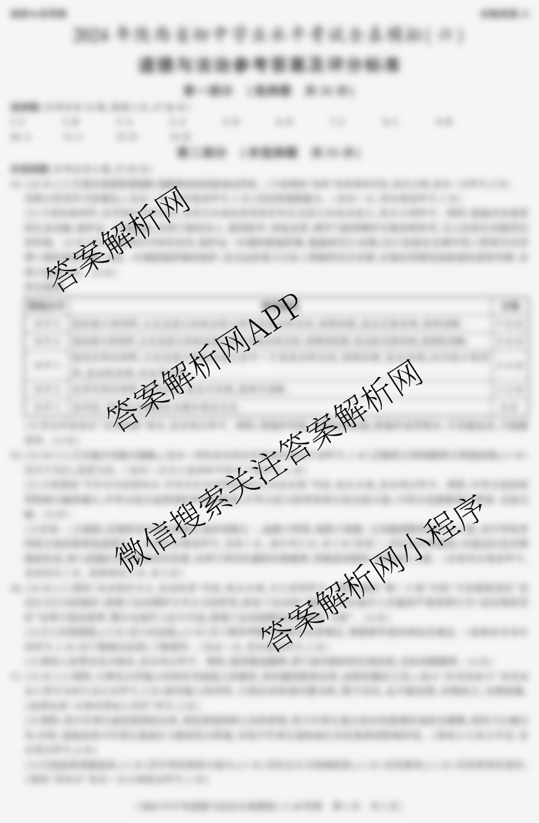 - [九年级]陕西(益卷)2024年陕西省初中学业水平考试全真模拟(六)6道德与法治(A)答案