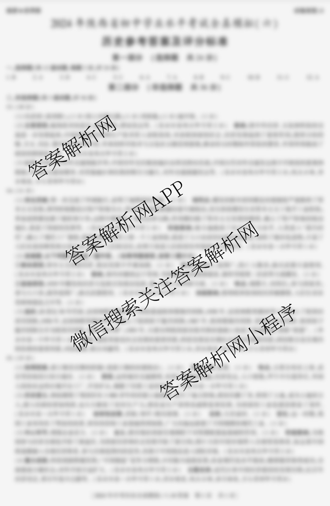 - 陕西(益卷)2024年陕西省初中学业水平考试全真模拟(六)6历史(B)答案