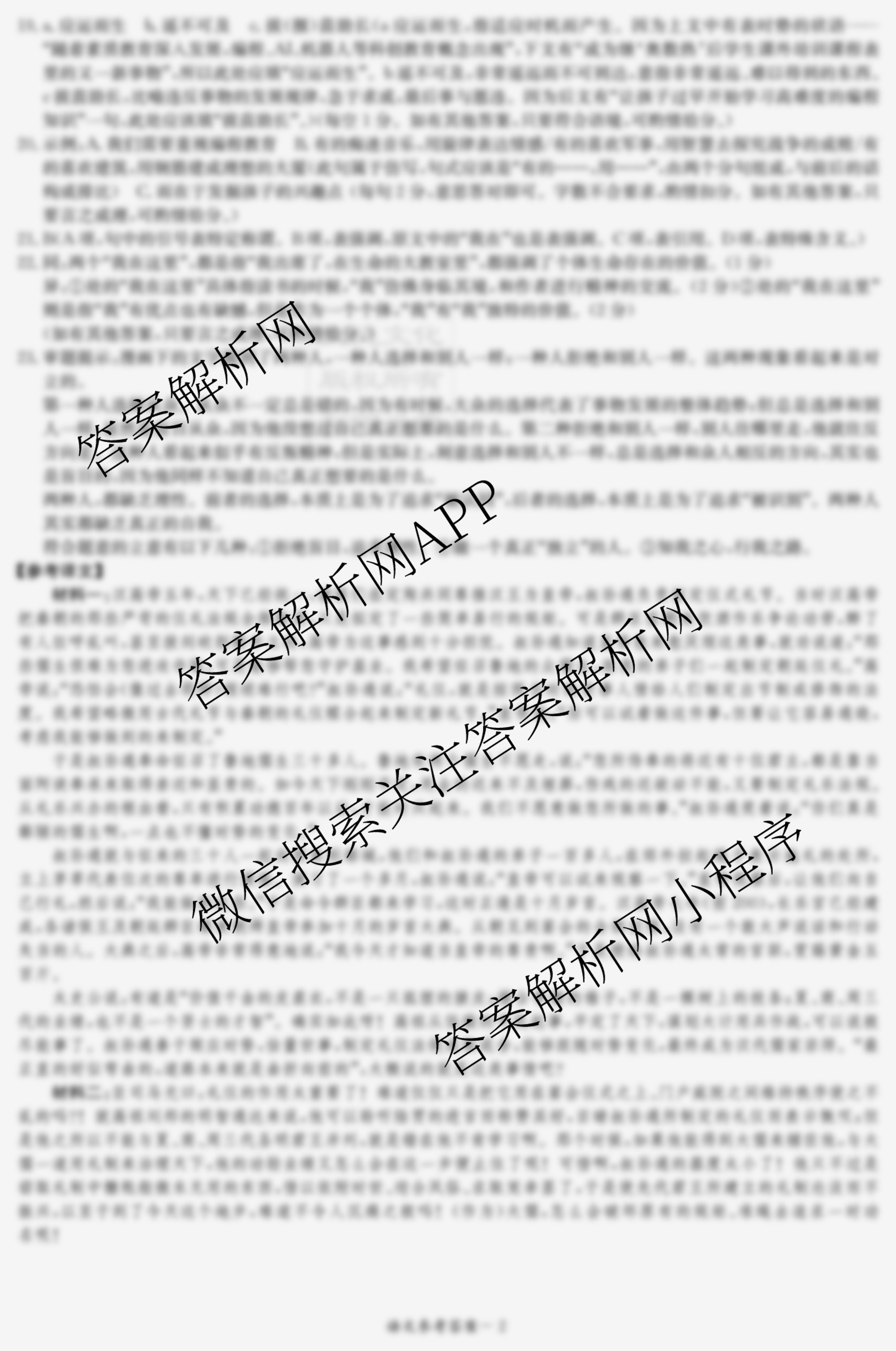 炎德英才大联考2024年高考考前仿真联考二语文答案