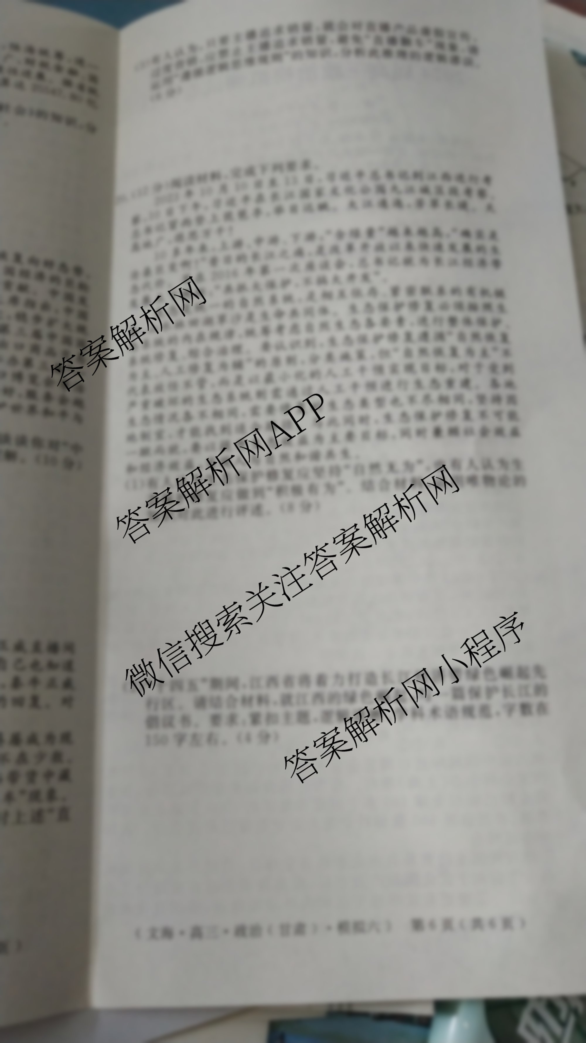 黄冈八模2024届高三政治模拟测试卷(甘肃)(六)6试题