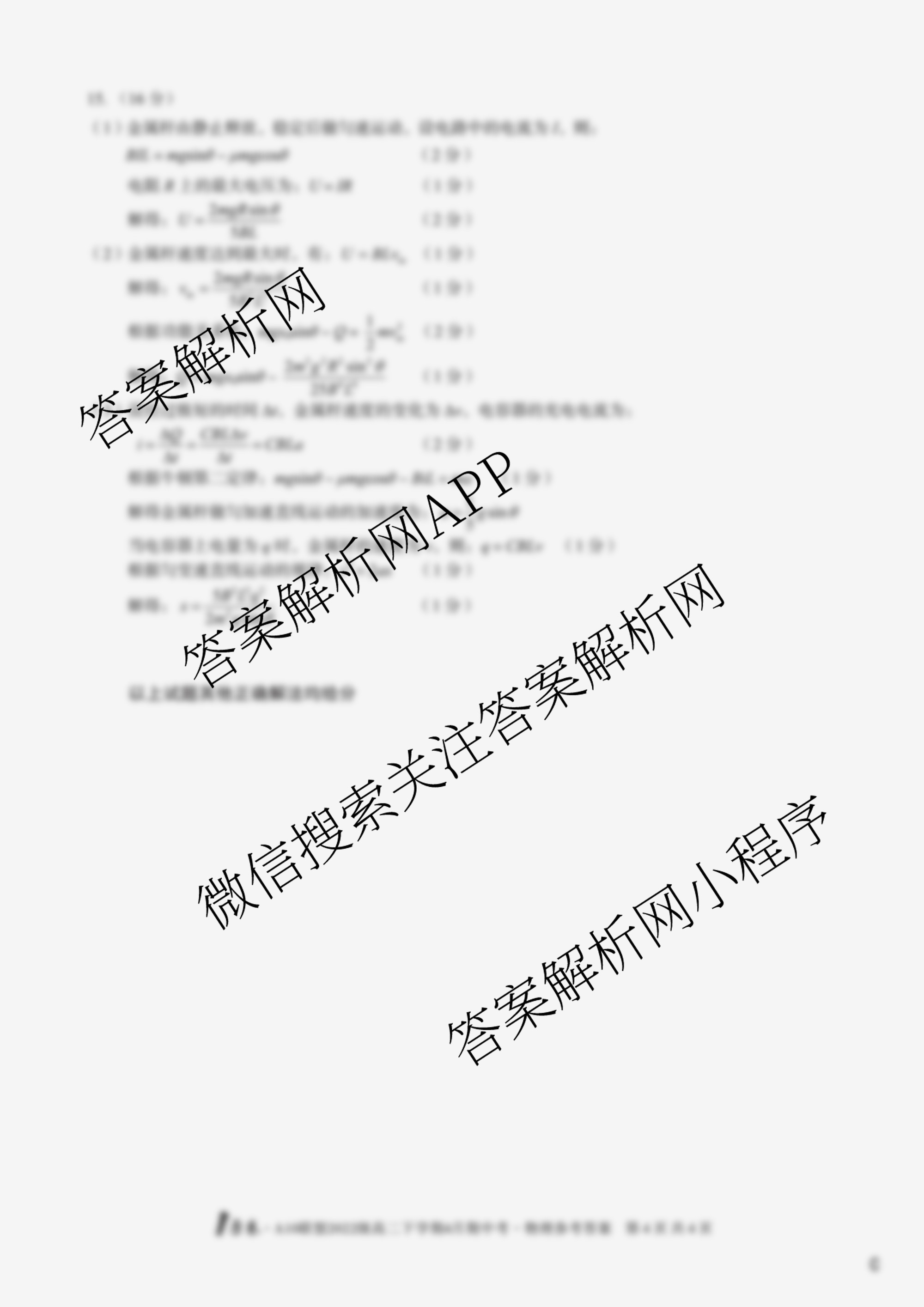 - [1号卷]·A10联盟2022级(高二)下学期4月期中考物理(B)答案