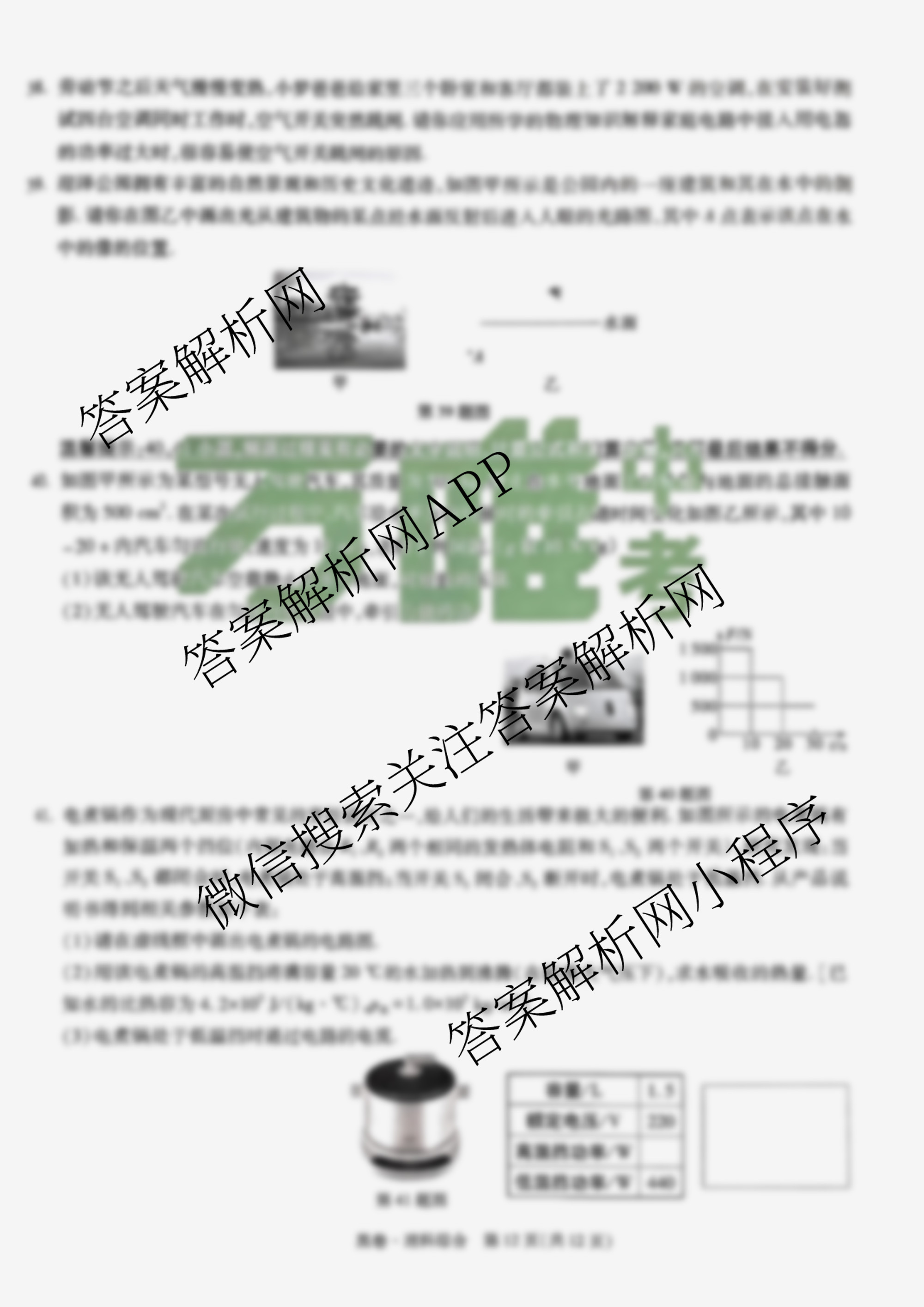 - 2024年山西省初中学业水平考试黑白卷 理综(白卷)答案