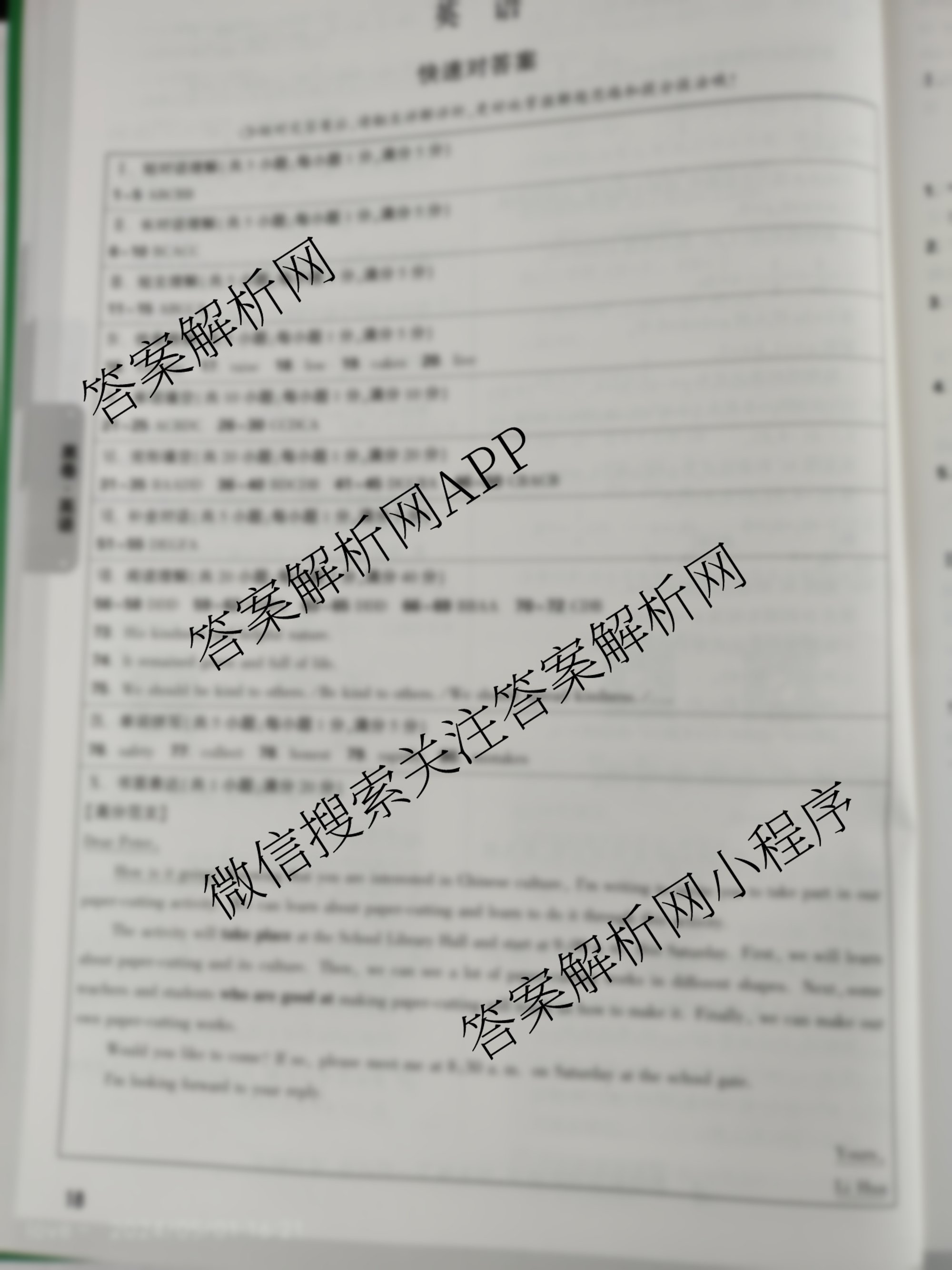 - 2024年安徽省初中学业水平考试黑白卷 英语(白卷)答案