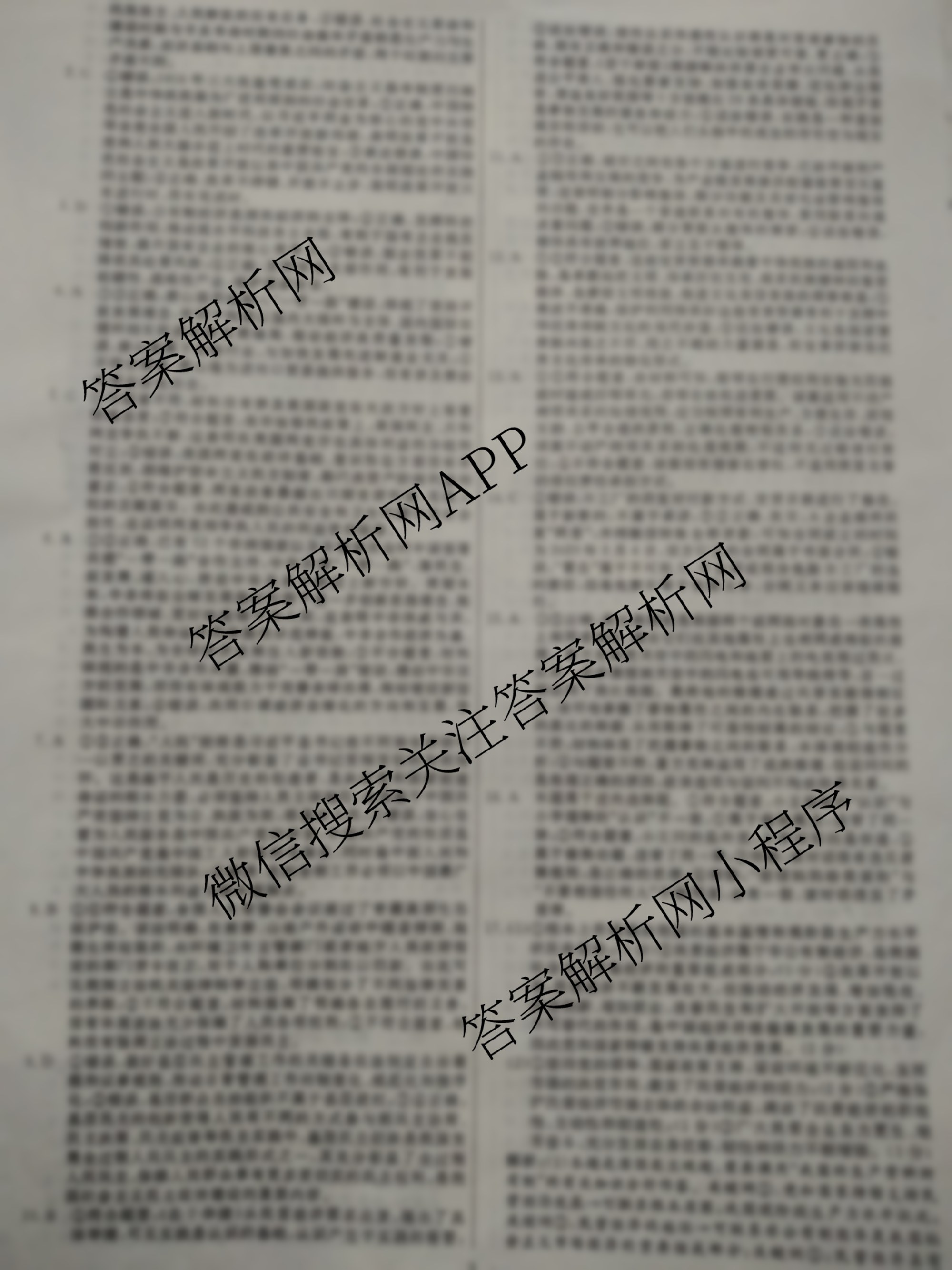 - (高三)(黄冈八模)2024届政治模拟测试卷(安徽)(二)2答案