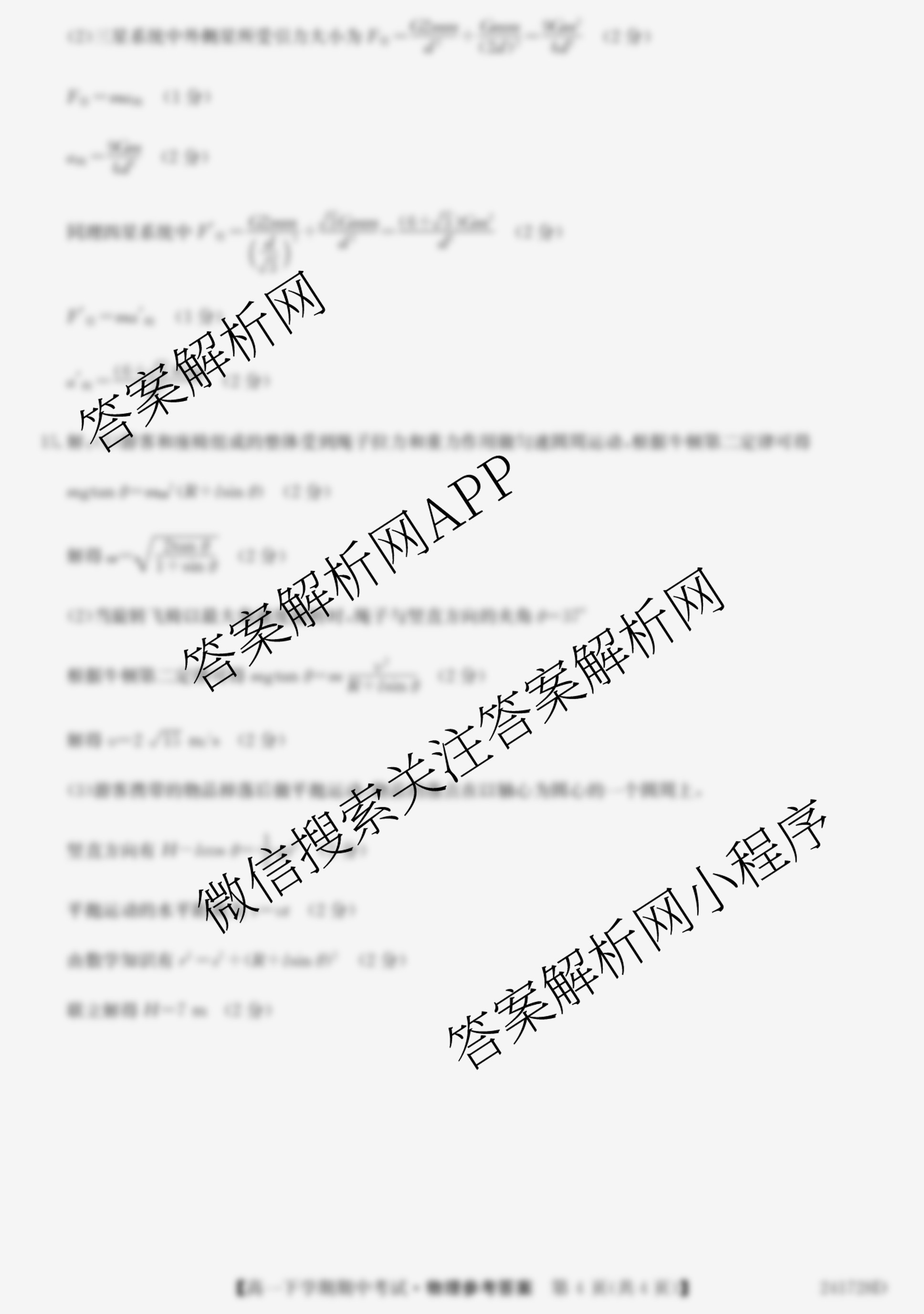 - 高一毛坦厂中学20232024学年度下学期期中考试(241728D)物理答案