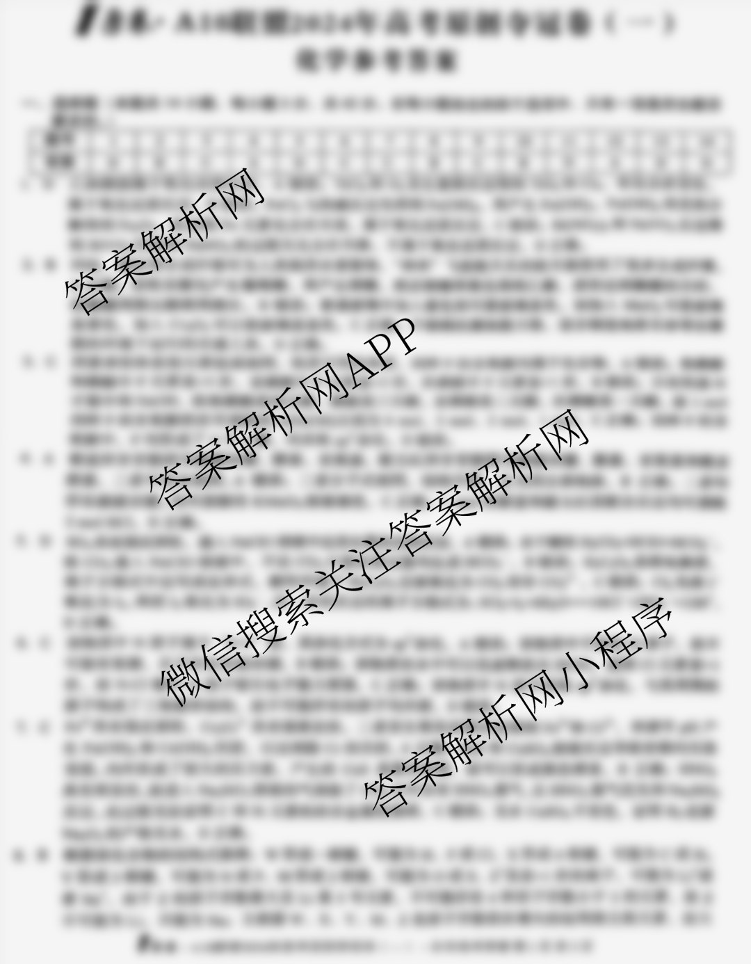 - [高三][1号卷]·A10联盟2024年高考原创夺冠卷(一)1化学答案