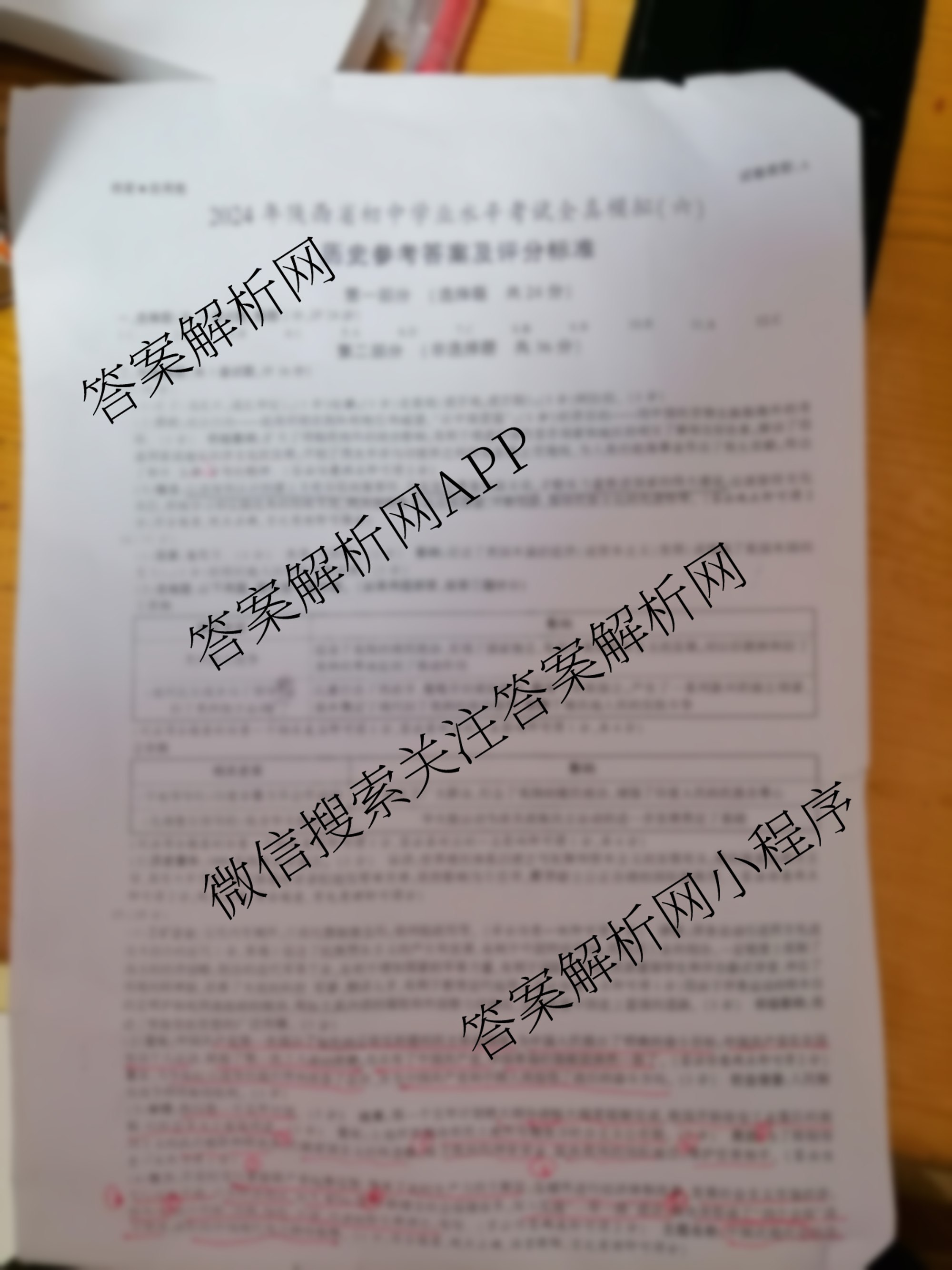 - 陕西(益卷)2024年陕西省初中学业水平考试全真模拟(六)6历史(B)答案