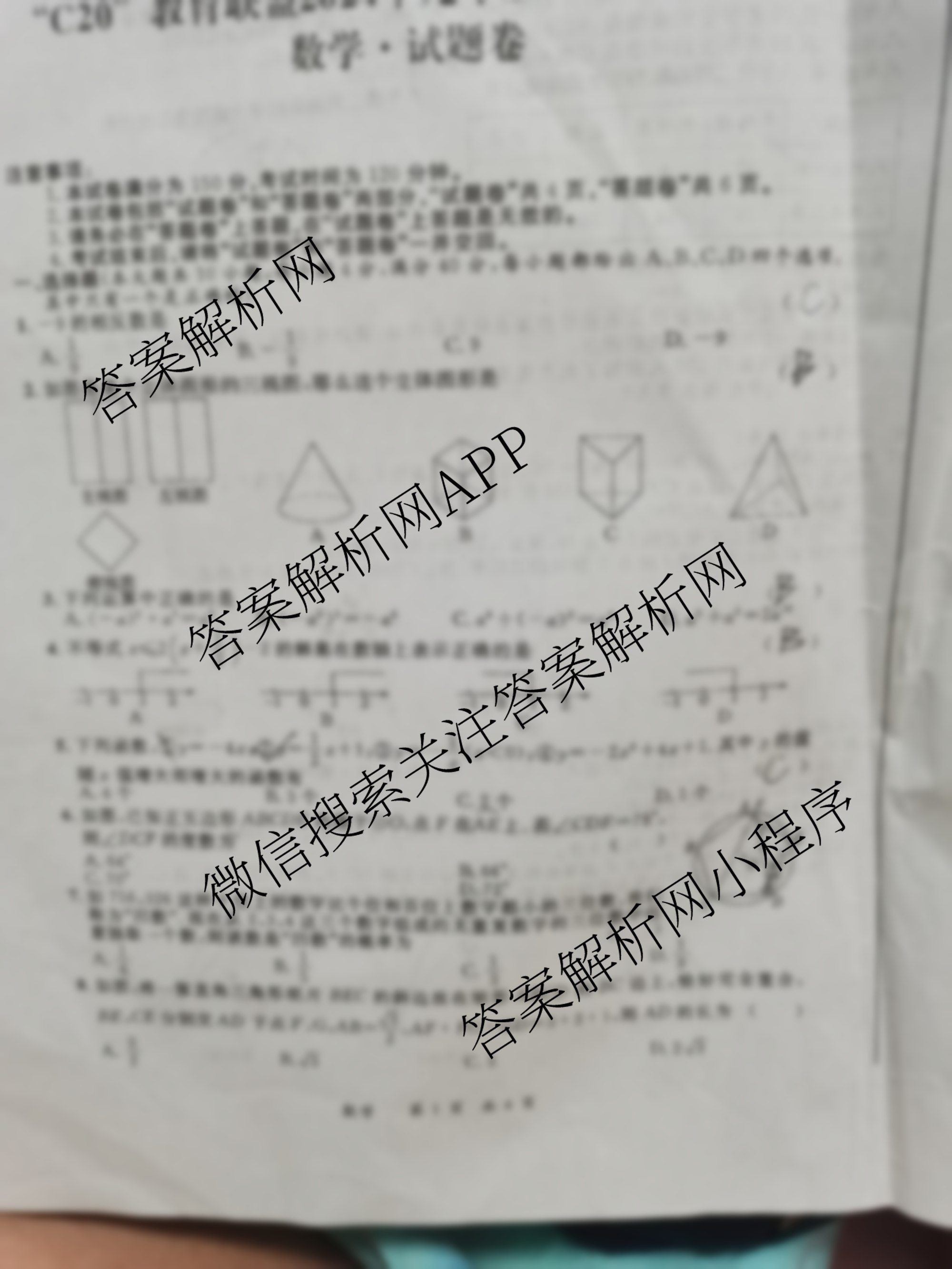 - 安徽省(C20教育联盟)2024年[九年级]第二次模拟试卷数学答案