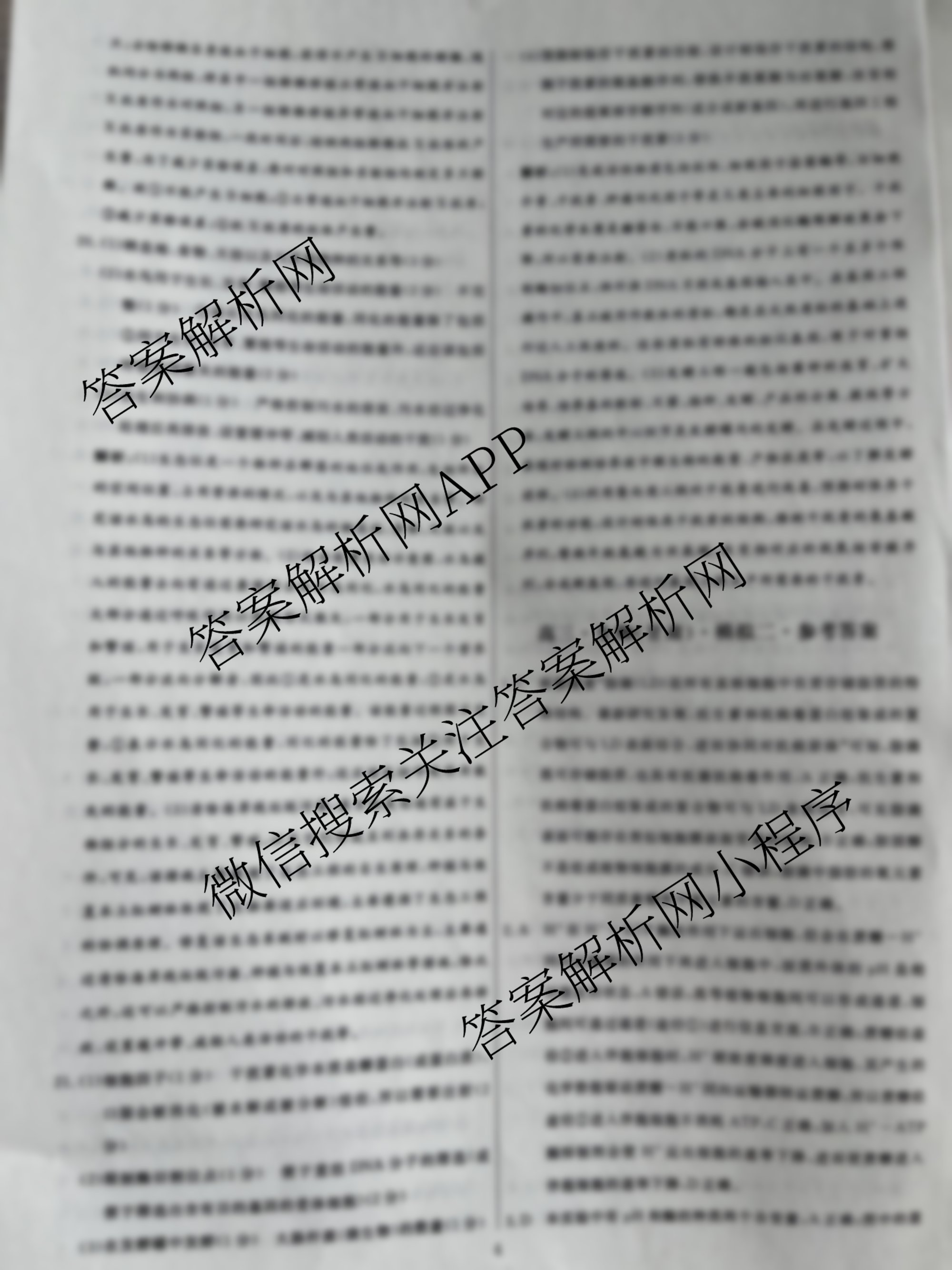 (黄冈八模)2024届(高三)生物模拟测试卷(甘肃)(一)1答案