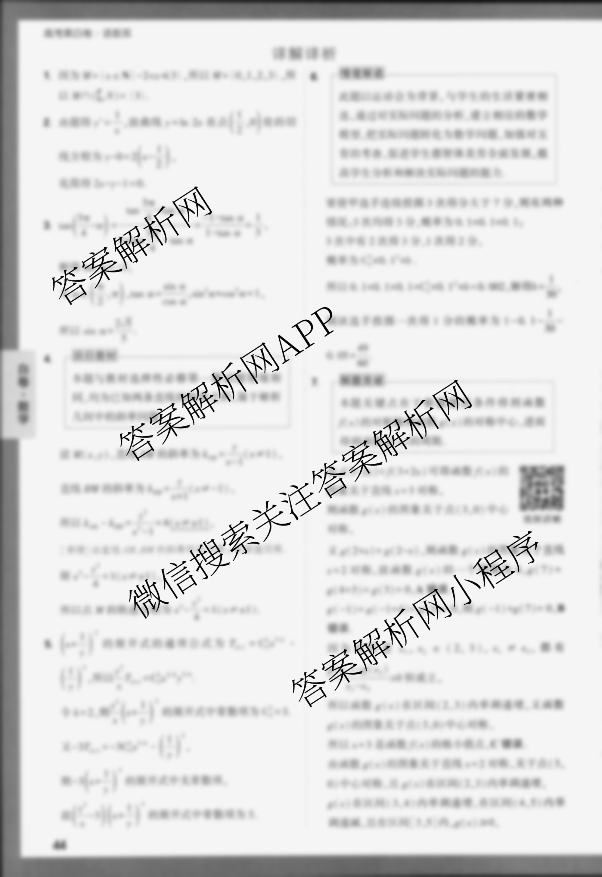 - 2024届黑白卷 白卷理数(全国卷)答案