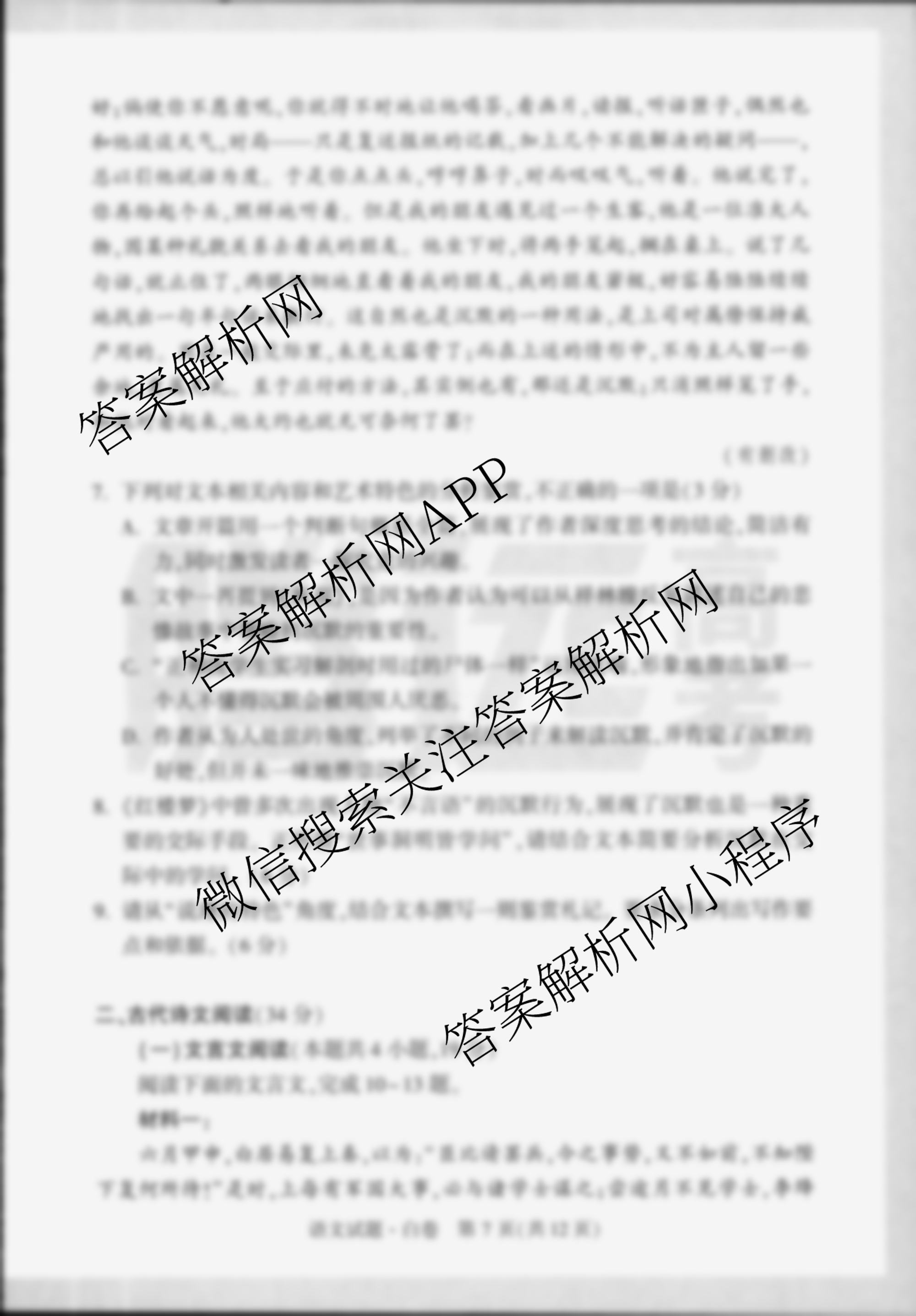 - 2024届黑白卷 白卷语文(全国卷)试题