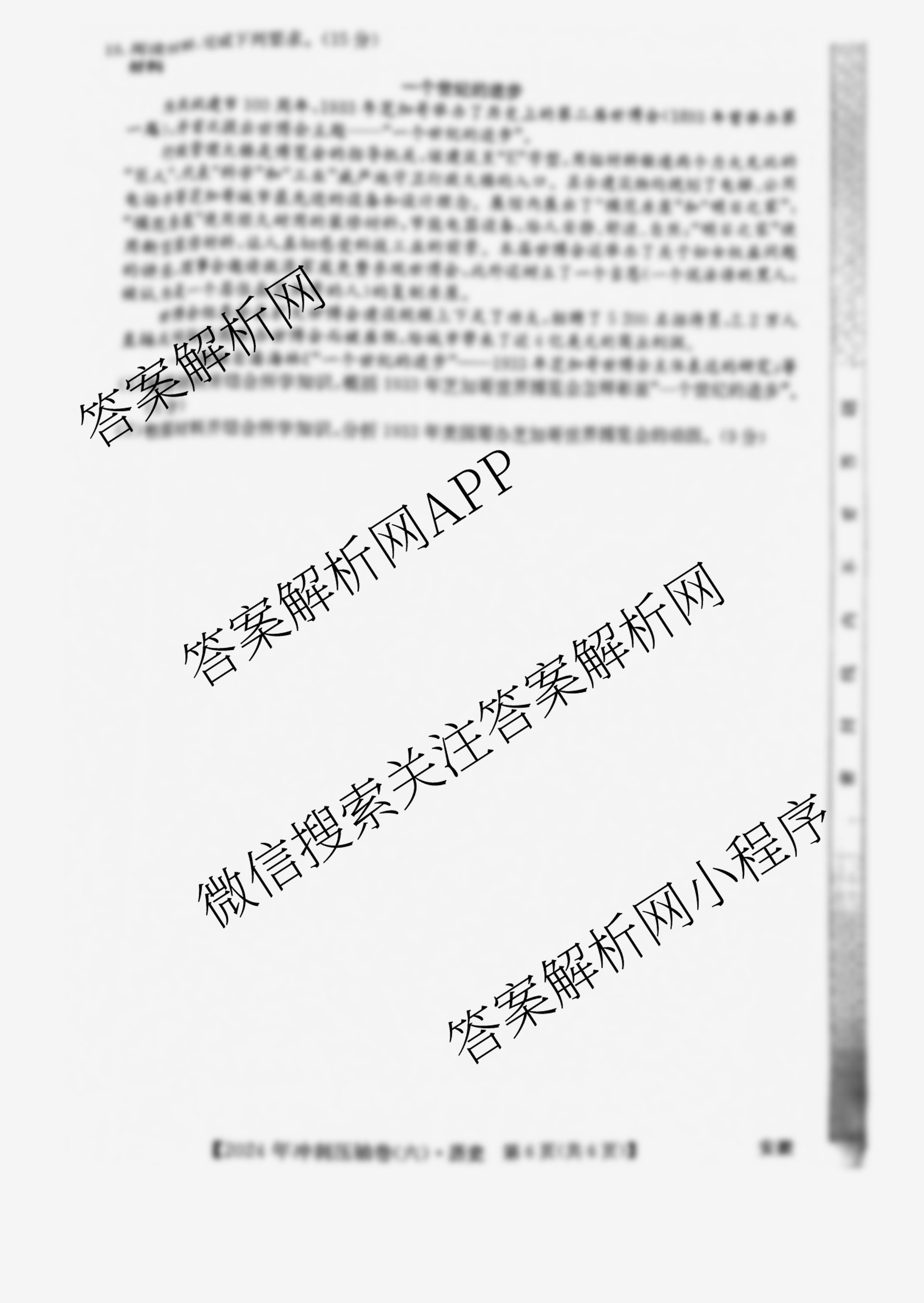 - [高三]2024年广西壮族自治区普通高中学业水平选择性考试冲刺压轴卷(六)6历史(广西)答案