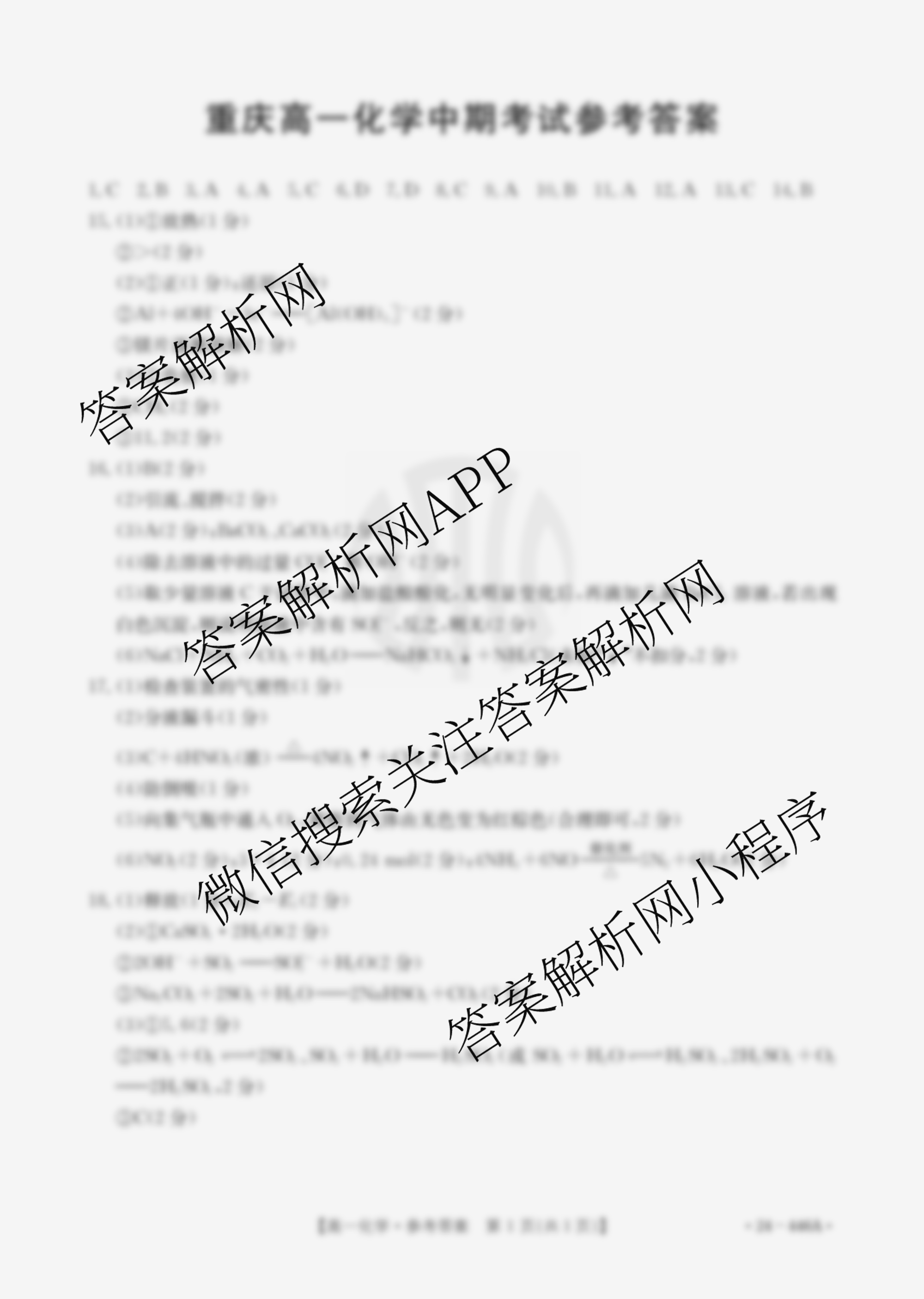 2023-2024重庆市高一中期考试(446A)化学答案,目前学英语报答案已经汇总了2023-2024重庆市高一中期考试(446A)化学答案的各科答案和试卷,获取更多金太阳大联考精品专辑答案解析,请在关注本站。