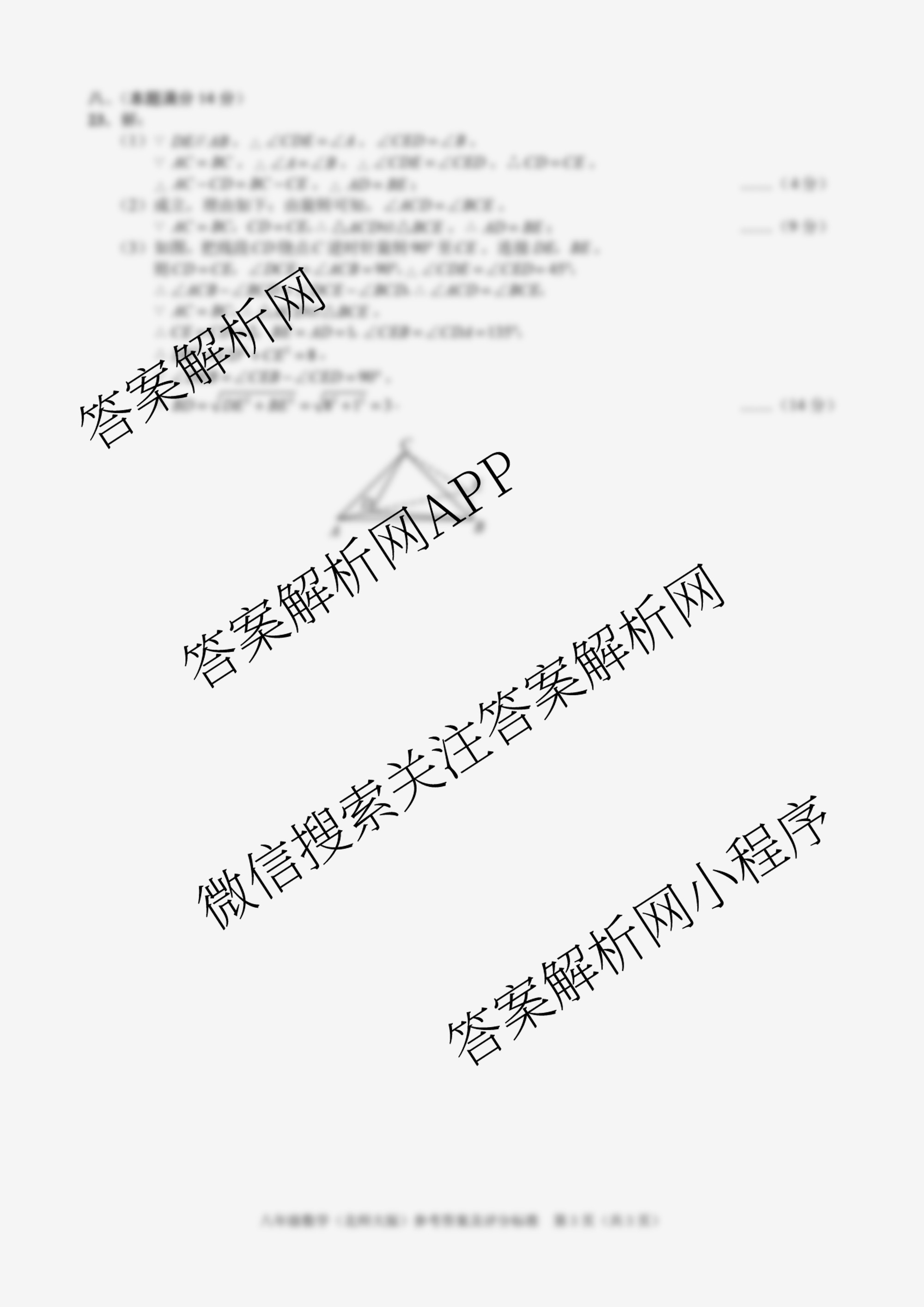 2023~2024八年级安徽省学年下学期期中教学质量调研数学(北师大版)答案