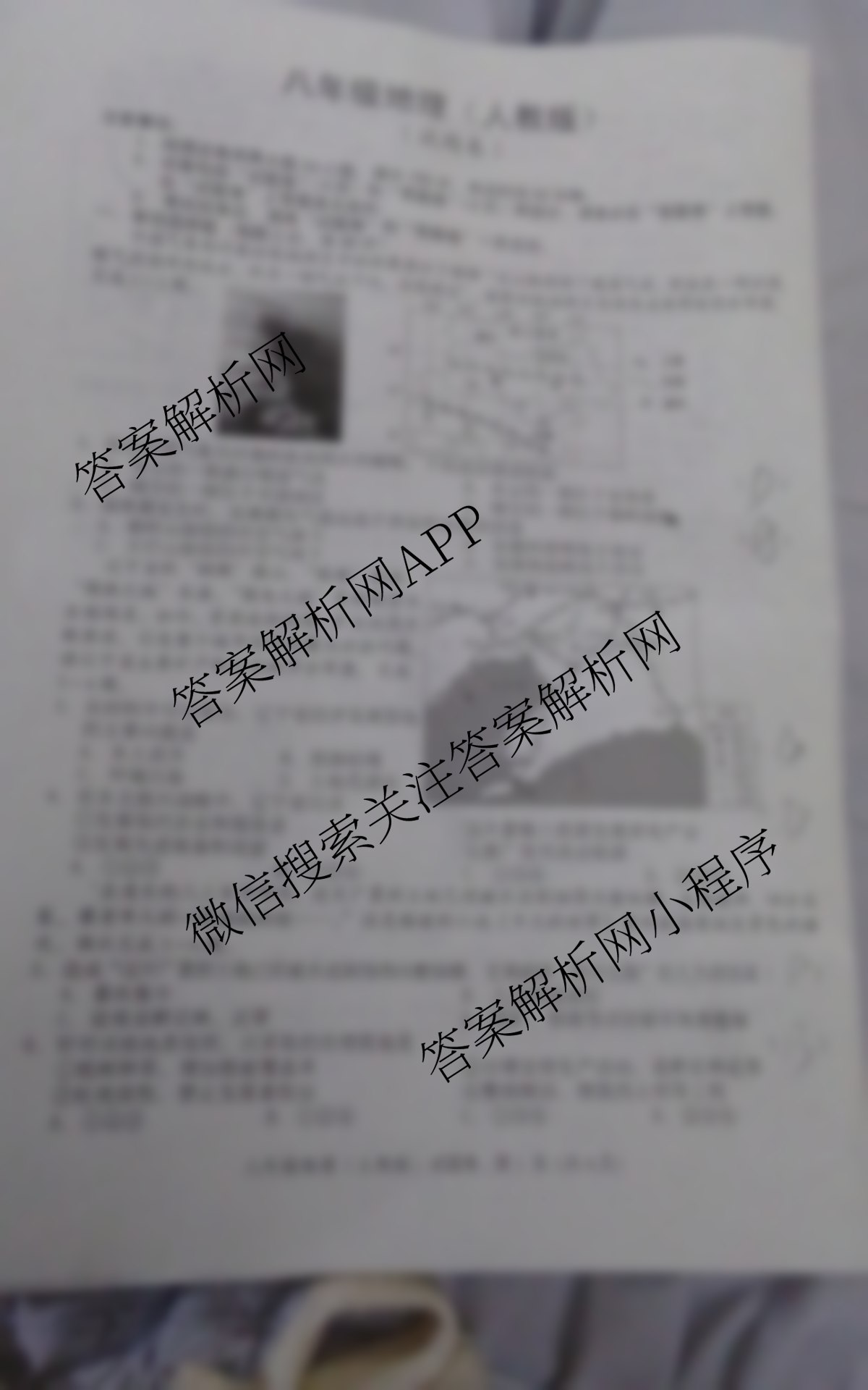 - [八年级]安徽省2023~2024学年下学期期中教学质量调研地理(湘教版)答案