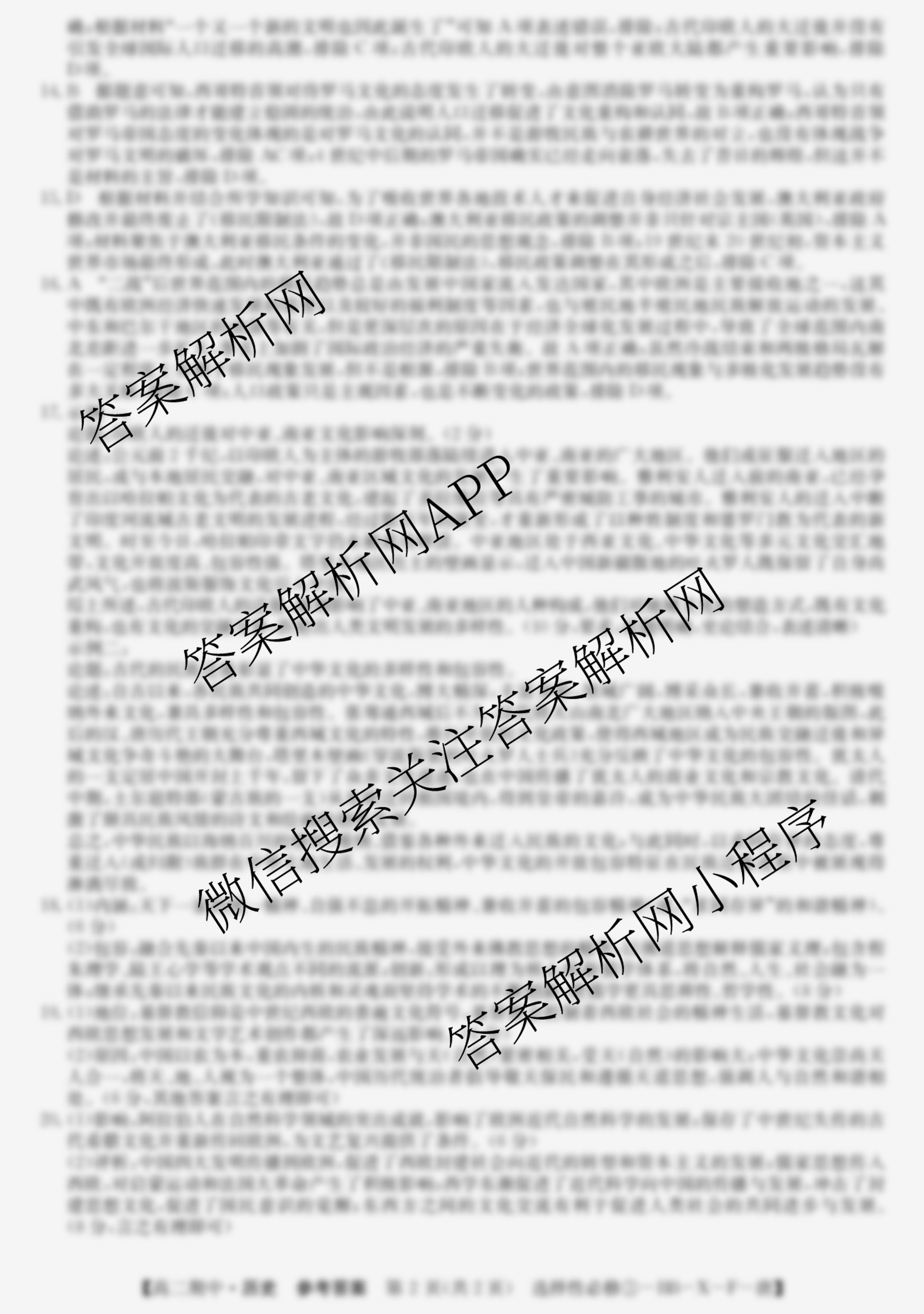 - 2023~2024全国名校高二第二学期期中考试历史(选择性必修③-BB-X-F-唐)答案