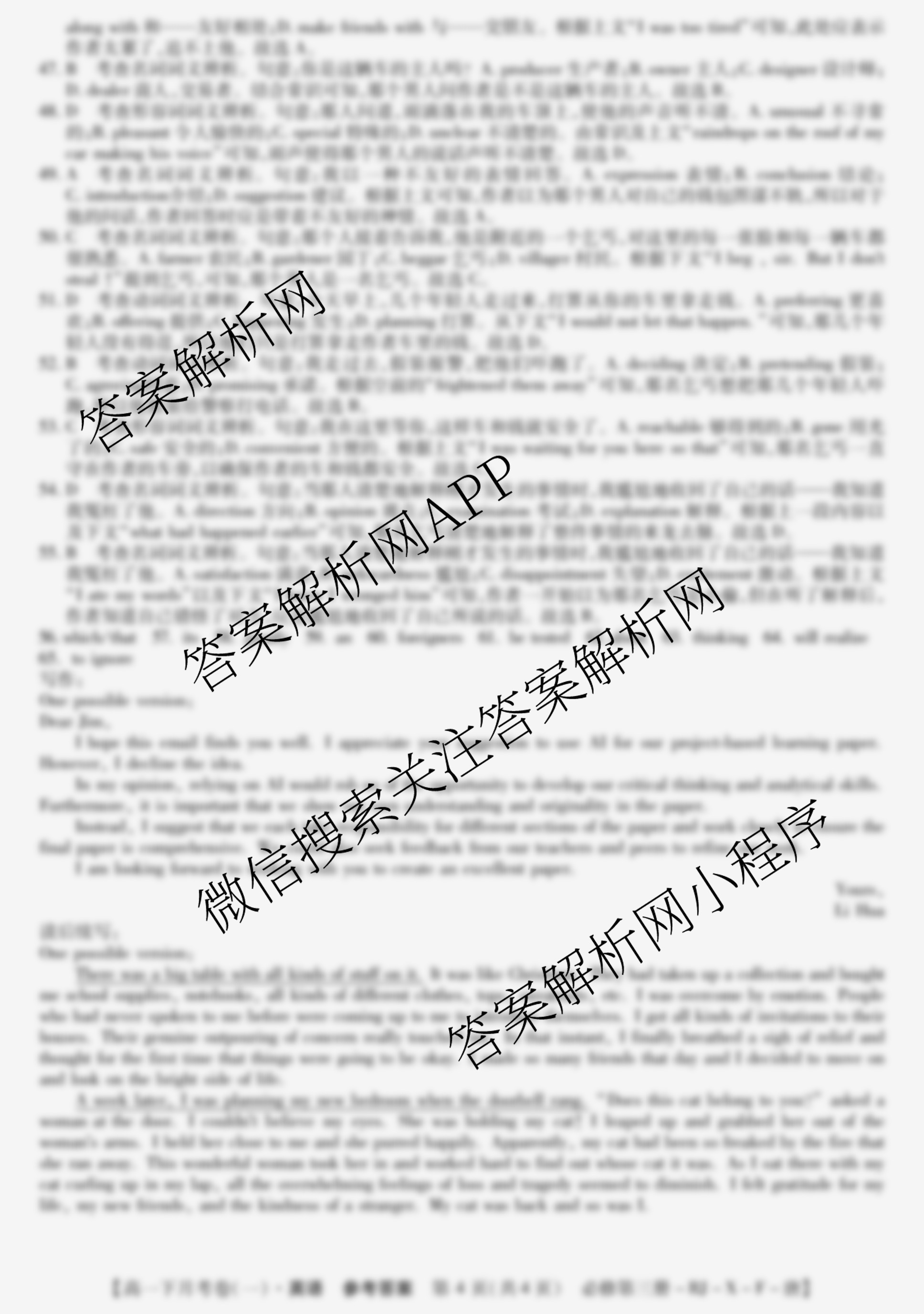 - (高一)2023~2024全国名校下学期第一次月考试卷英语(必修第三册-RJ-X-F-唐)答案