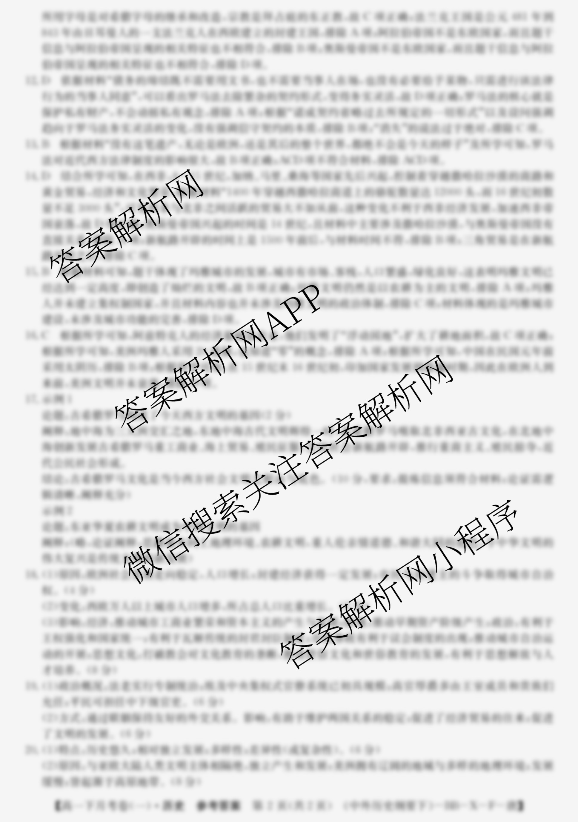 - 2023~2024[高一]全国名校下学期第一次月考试卷历史(中外历史纲要下-BB-X-F-唐)答案