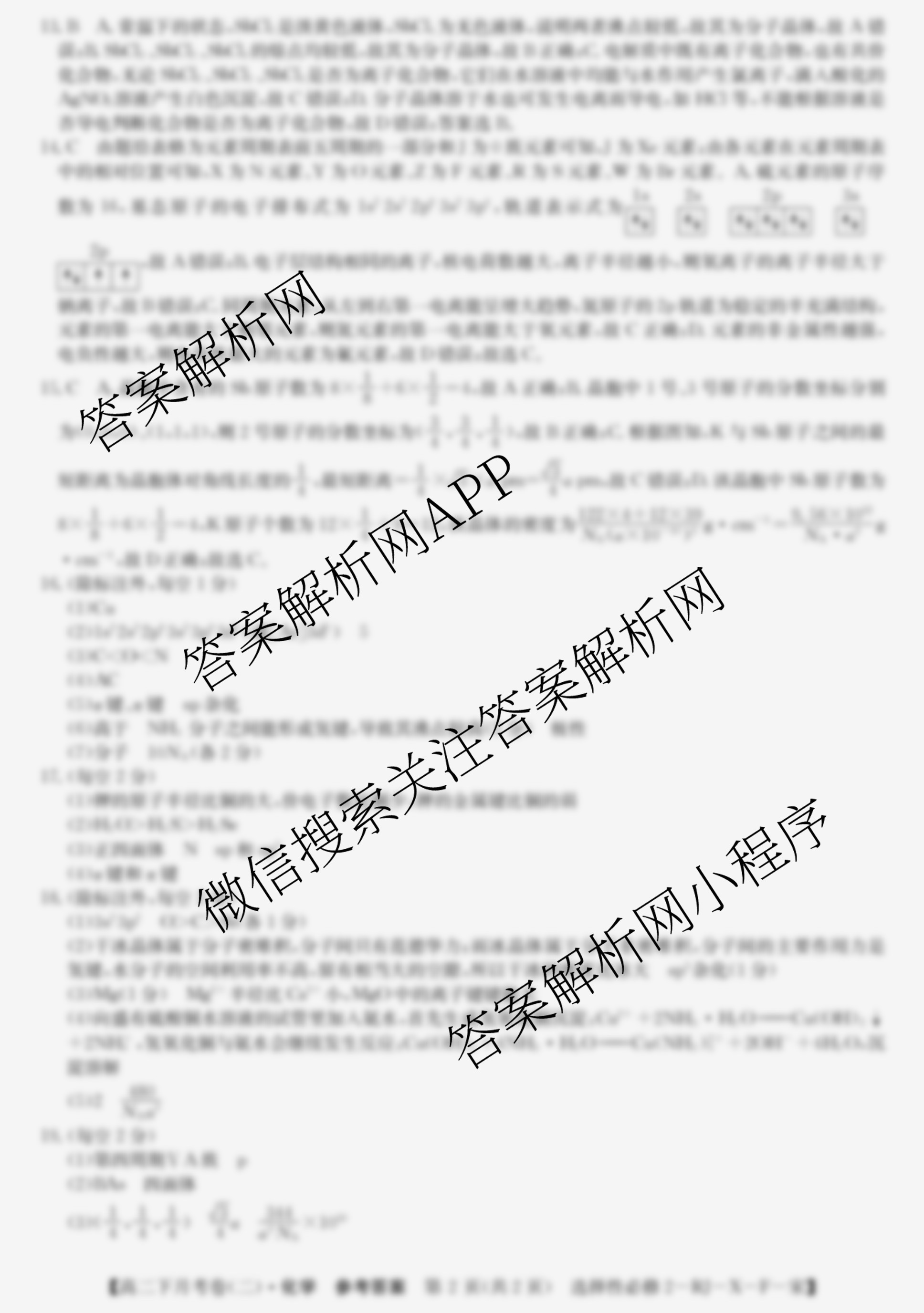 2023~2024全国名校(高二)下学期第二次月考试卷化学(选择性必修2-RJ-X-F-宋)答案