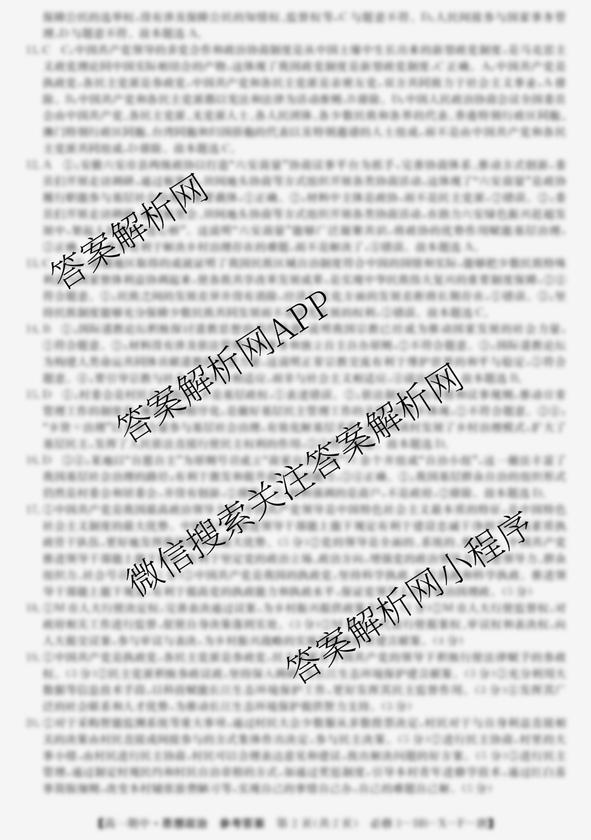 2023~2024全国名校(高一)第二学期期中考试政治(必修3-BB-X-F-唐)答案