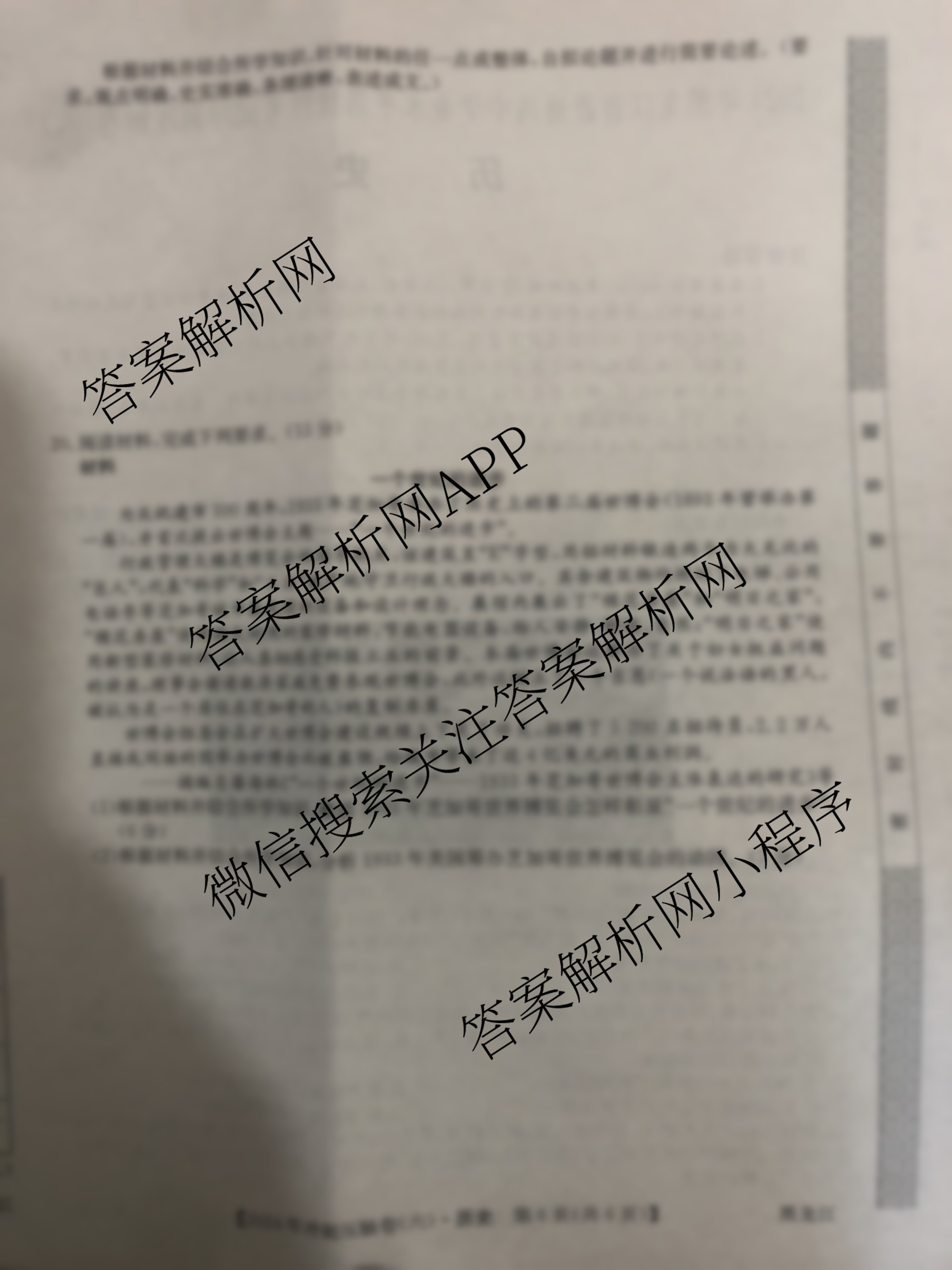 - [高三]2024年广西壮族自治区普通高中学业水平选择性考试冲刺压轴卷(六)6历史(广西)答案
