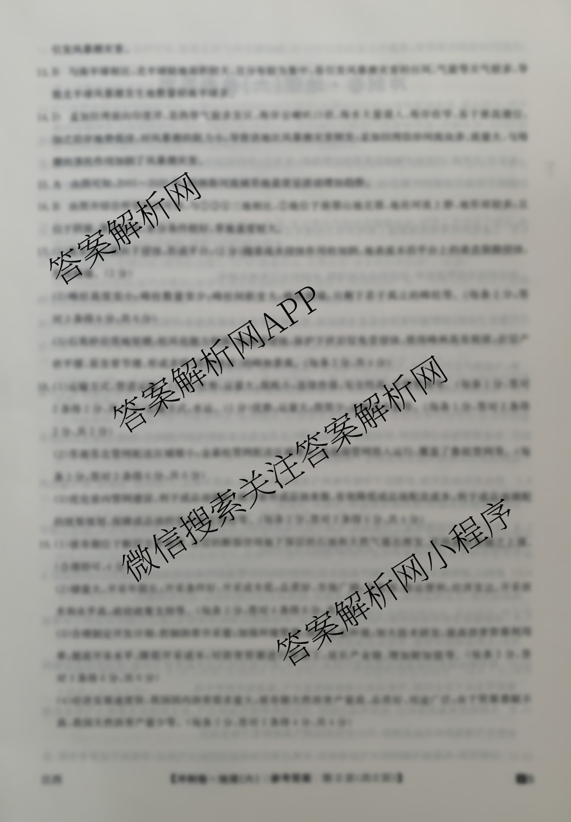 - 高三2024年安徽省普通高中学业水平选择性考试冲刺压轴卷(六)地理(安徽)答案