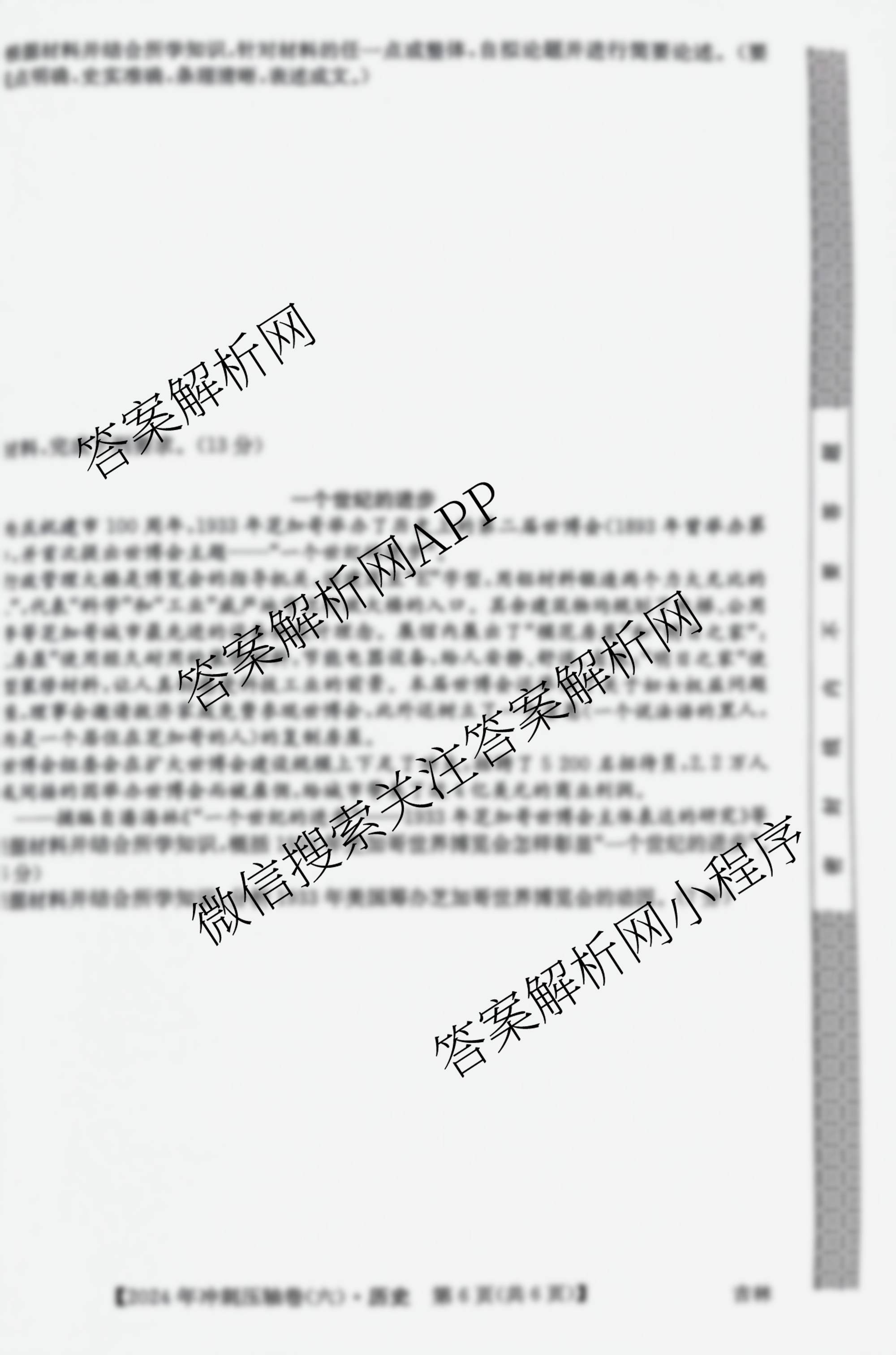- [高三]2024年广西壮族自治区普通高中学业水平选择性考试冲刺压轴卷(六)6历史(广西)答案