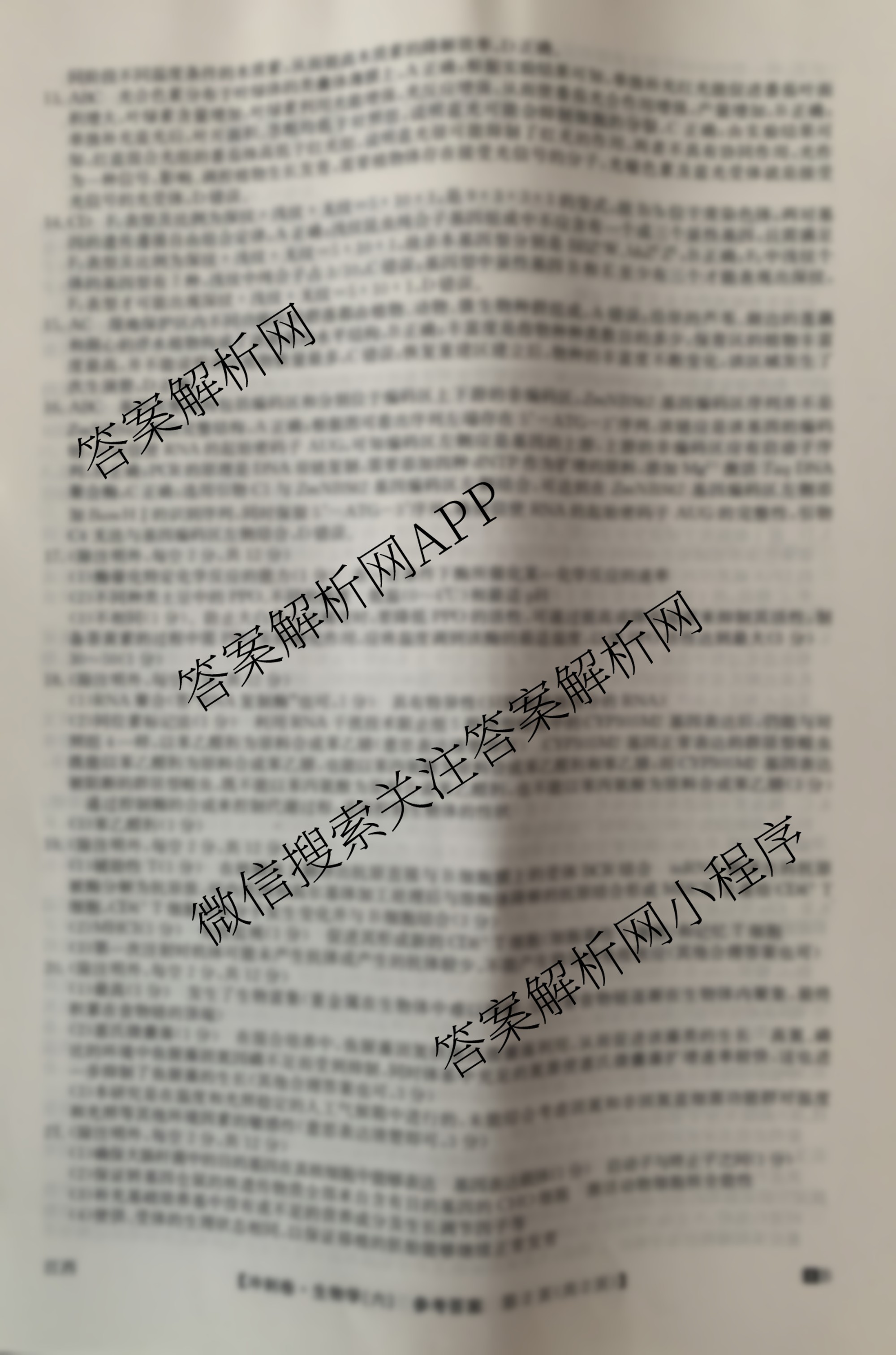 高三2024年江西省普通高中学业水平选择性考试冲刺压轴卷(六)生物(江西)答案