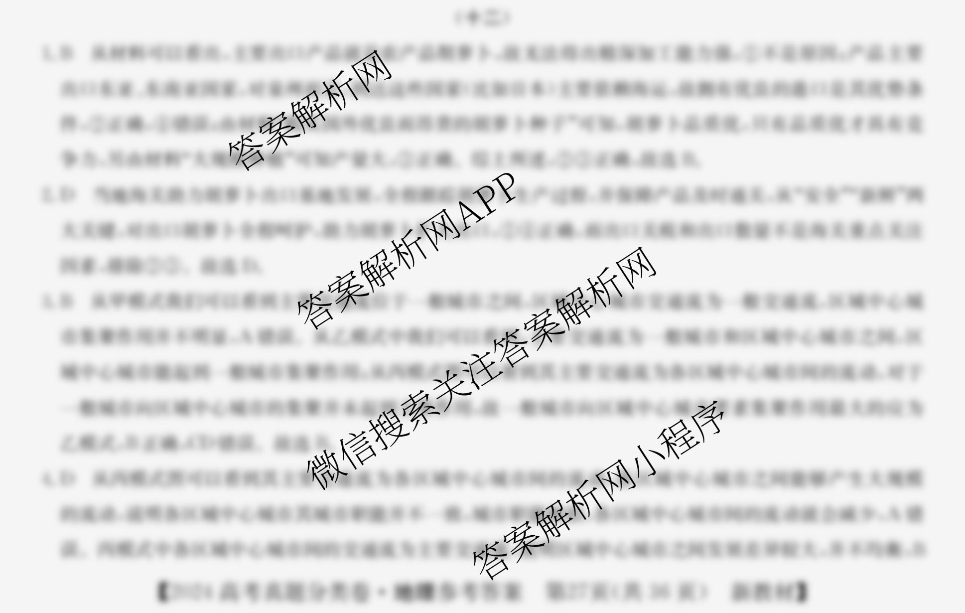 2024届最新五年高考真题分类优化卷地理(新教材)(十二)12答案
