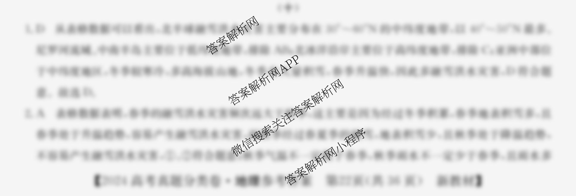 2024届最新五年高考真题分类优化卷地理(新教材)(十)10答案