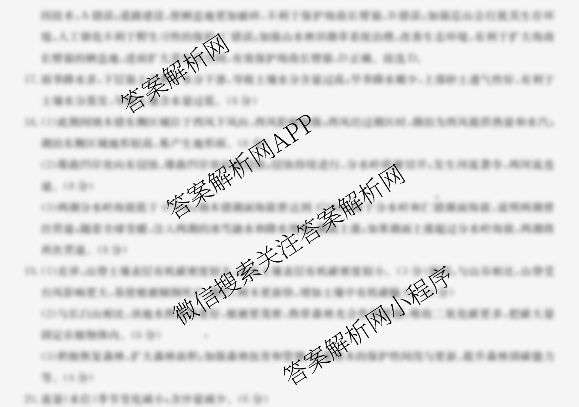 2024届最新五年高考真题分类优化卷地理(新教材)(七)7答案
