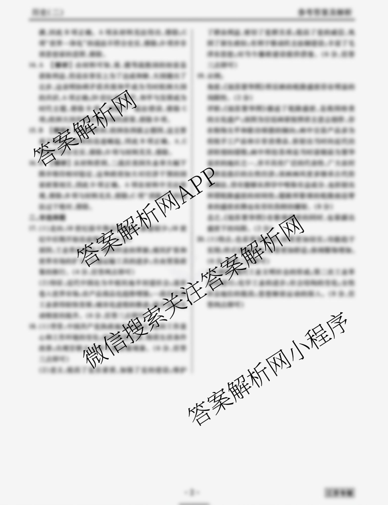 - [高三][衡水金卷先享题]调研卷 2024年普通高中学业水平选择性考试模拟试题(二)2历史(广东专版)答案