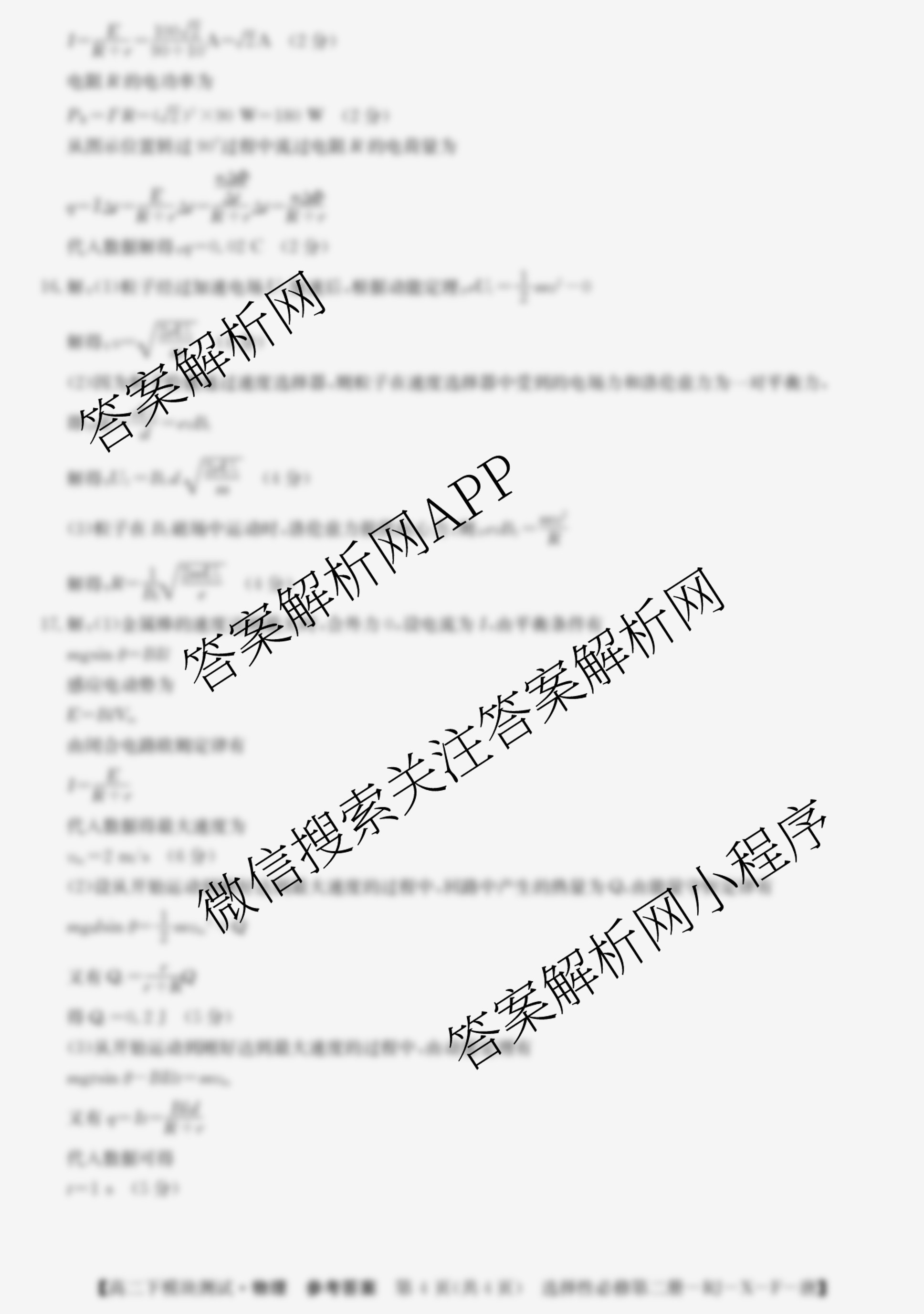 2023~2024全国名校(高二)下学期《选择性必修第二册》模块测试物理(选择性必修第二册-RJ-X-F-唐)答案