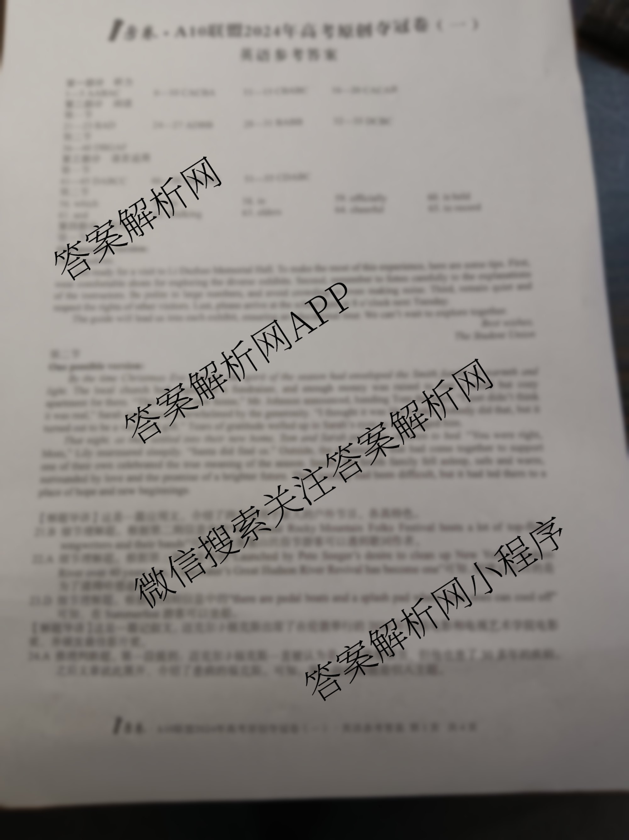 - [高三]1号卷A10联盟2024年高考原创夺冠卷(一)1英语答案