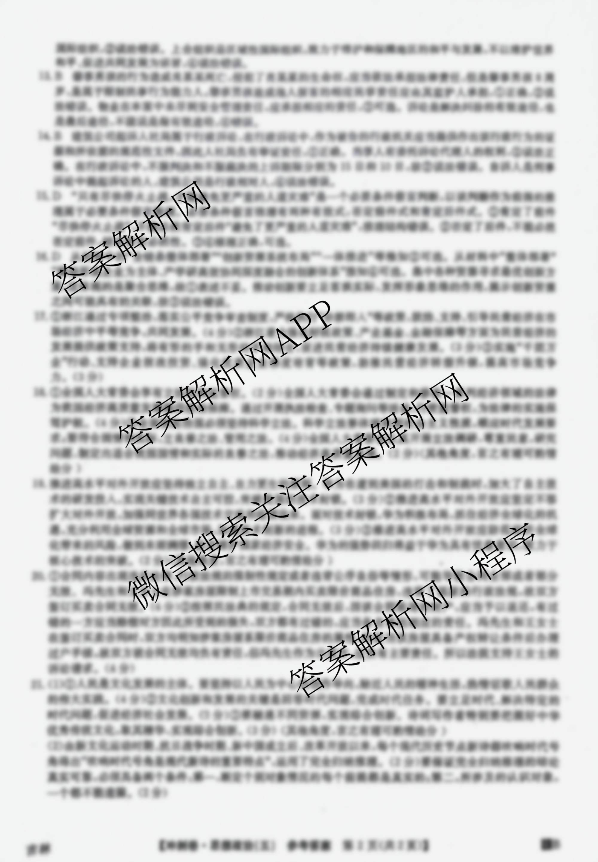 2024年吉林省普通高中学业水平选择性考试冲刺压轴卷(五)5政治(吉林)答案