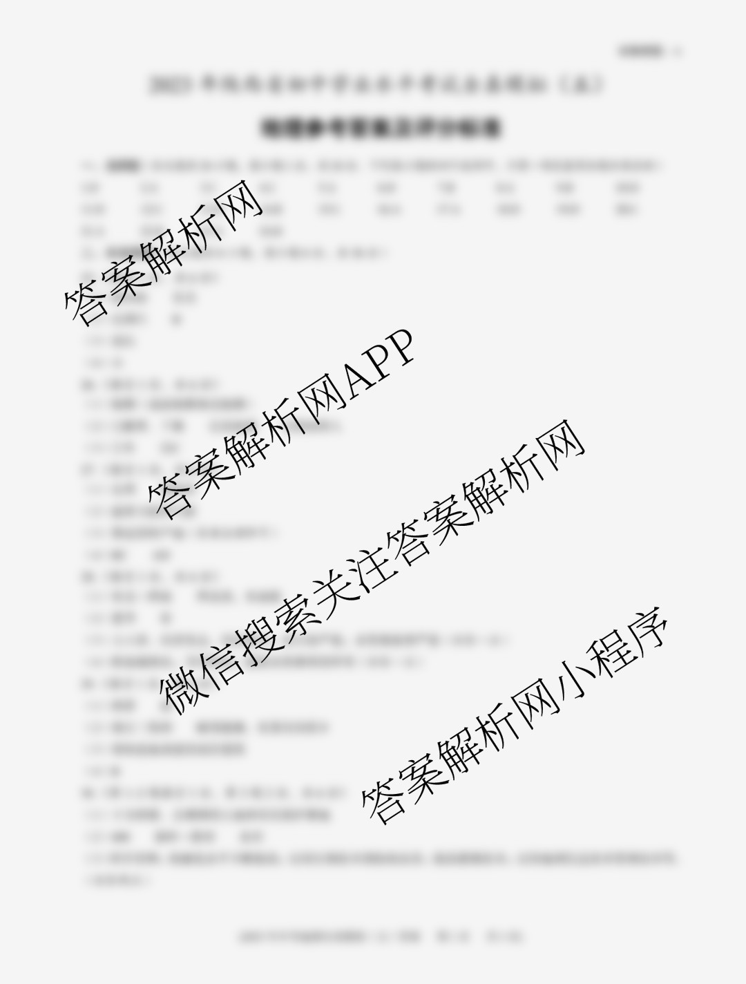 - 陕西[益卷] 2023年陕西省初中学业水平考试全真模拟卷(五)地理(A)答案