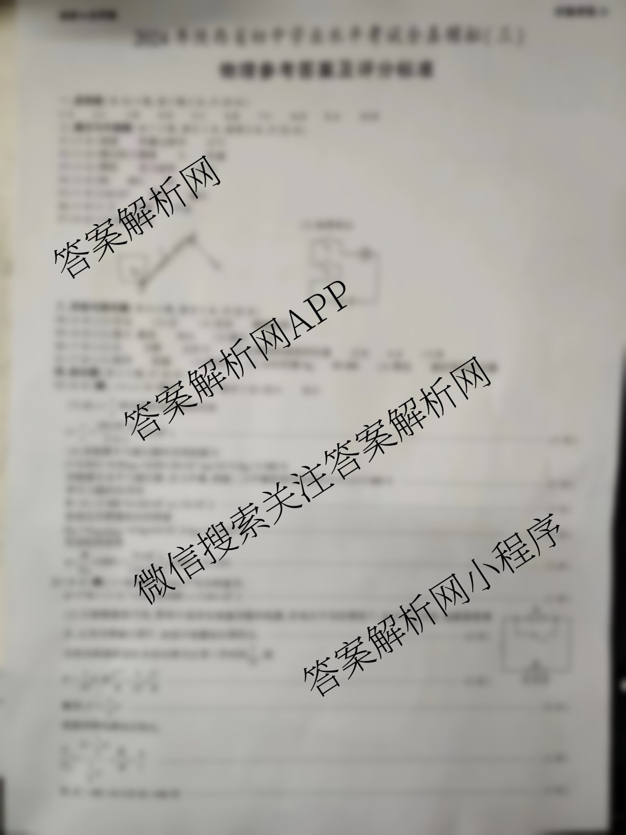 - (九年级)陕西(益卷)2024年陕西省初中学业水平考试全真模拟(三)3物理(B)答案