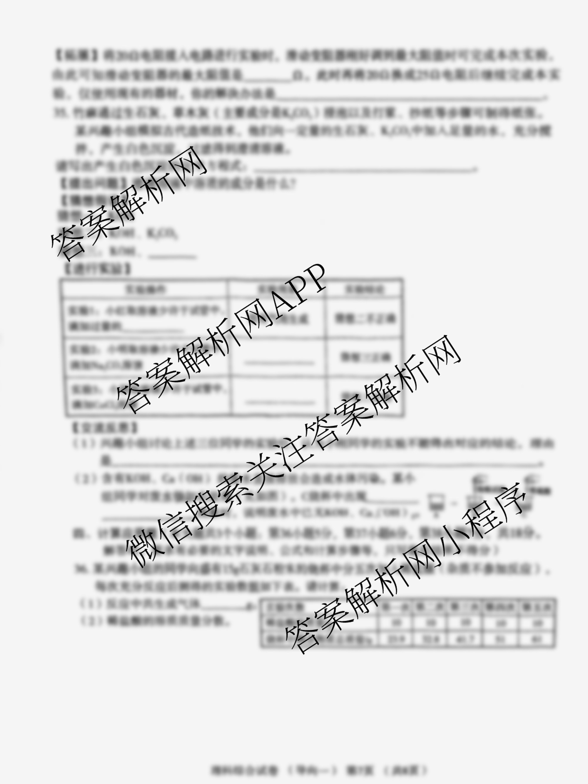 - [九年级]文博志鸿·2023年河北省初中毕业生升学文化课模拟考试(导向一)化学答案