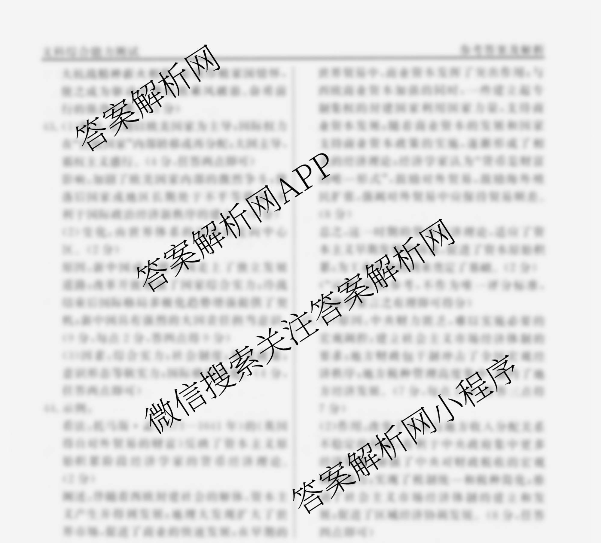衡水名师卷高考模拟信息卷2024年普通高等学校招生全国统一考试模拟 文综(空心◇)(三)3答案