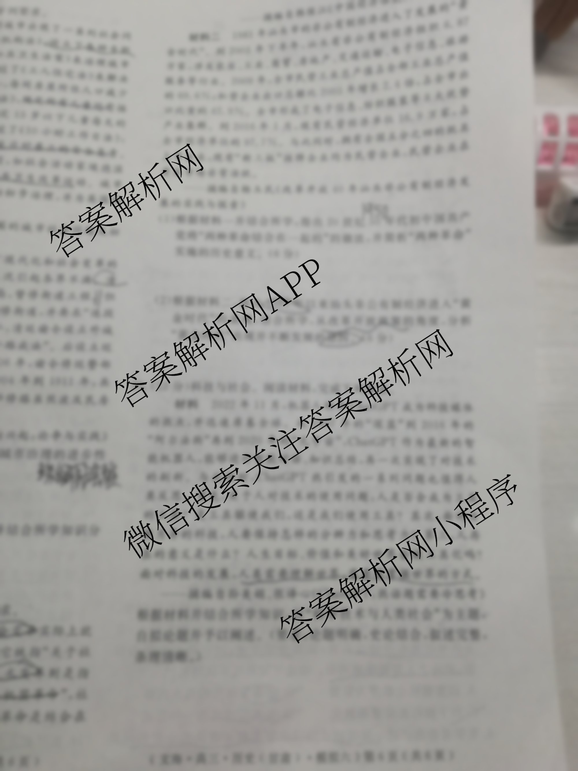 黄冈八模2024届高三历史模拟测试卷(甘肃)(六)6试题
